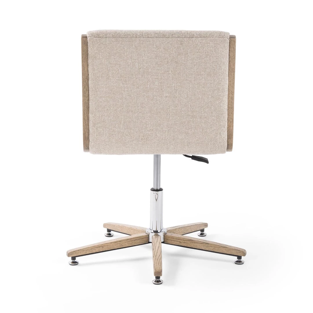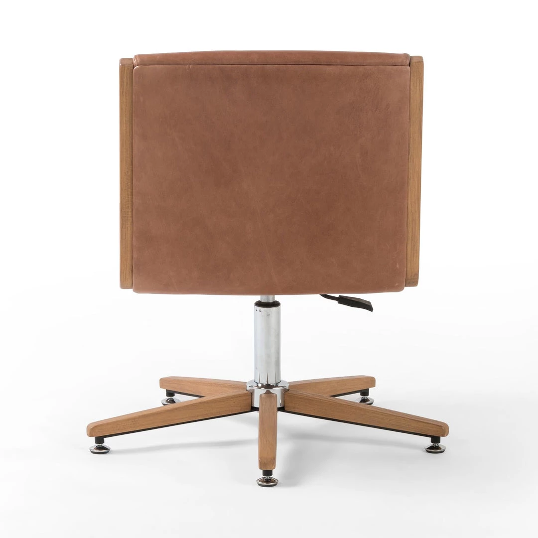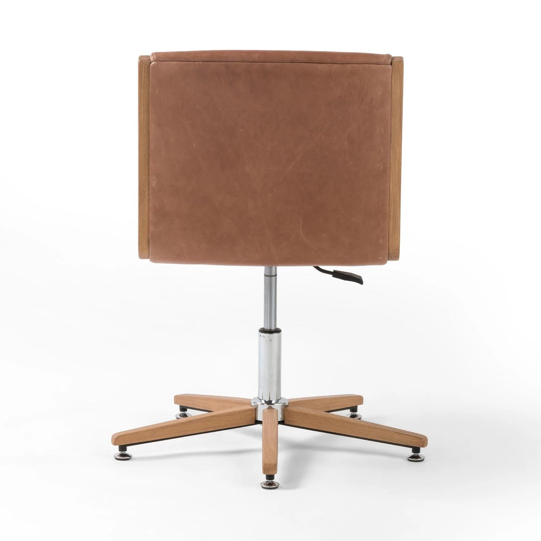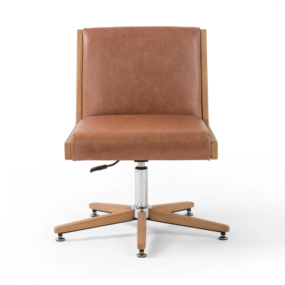 Solid beech wood forms a sleek armless frame for tan top-grain leather, spurring a wonderfully mid-century modern look, with an adjustable swivel base for ease.