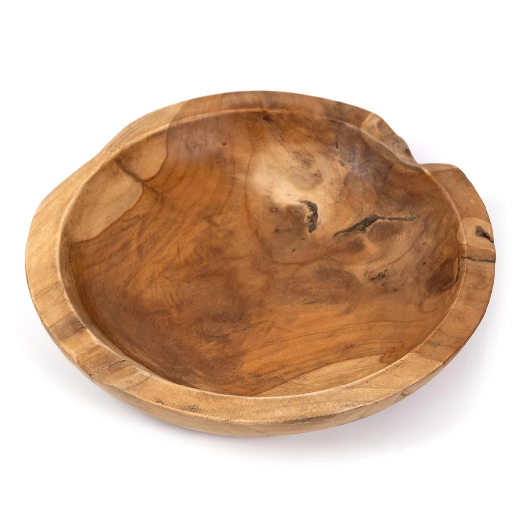 Craft an organic look, indoors or out. Carved from solid teak with visible knots and graining, a practical catchall is ready to store pool keys, sunglasses and more. Each bowl will vary in shape, size and color, based on material’s aging process. For decorative use only. Store indoors during inclement weather and when not in regular use.
