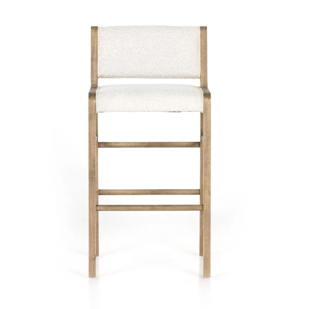 Make it modern with mixed materials. In a light, natural finish, solid parawood forms an angular frame for boucle-upholstered bar seating in a classic cream.