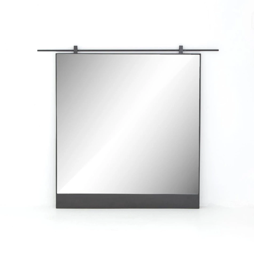 A slim antiqued iron bar suspends a simple square for a streamlined look with modern-minimalist allure. Posterior cleat for secure hanging.