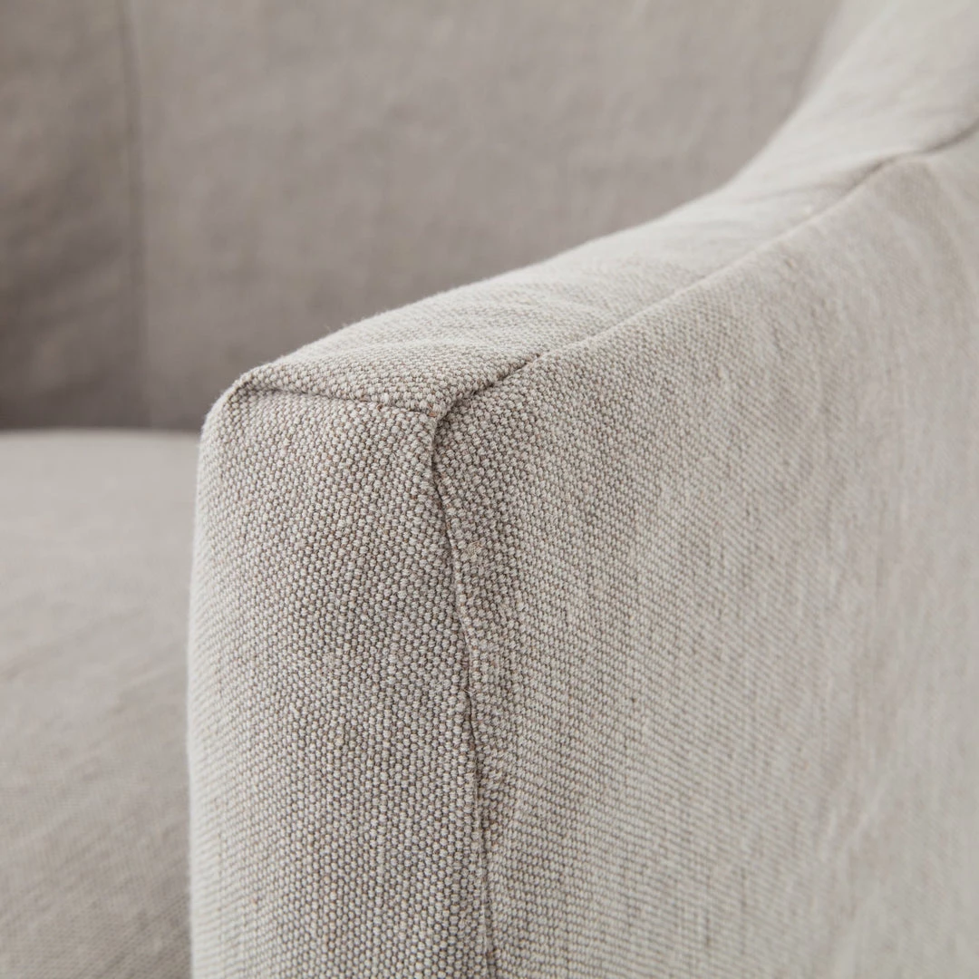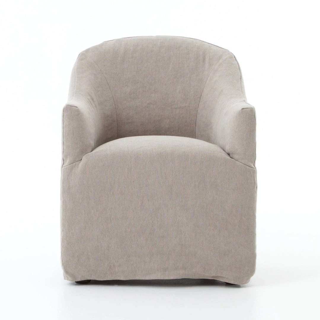 The traditional barrel chair gets a stylish, feminine update. Cunning curves covered in heather twill add eye-catching style and back-hugging support.