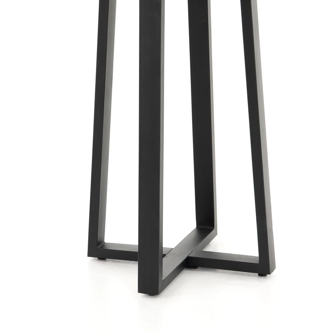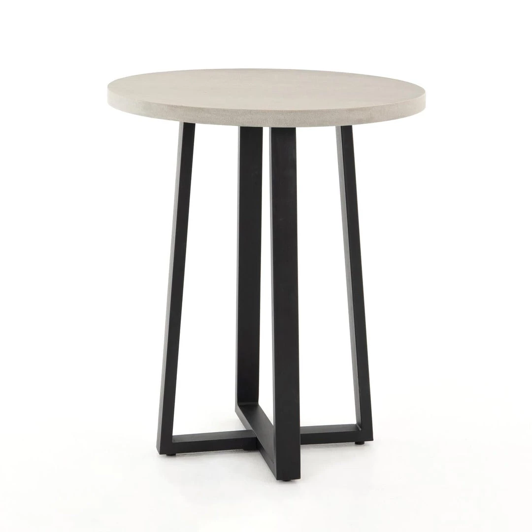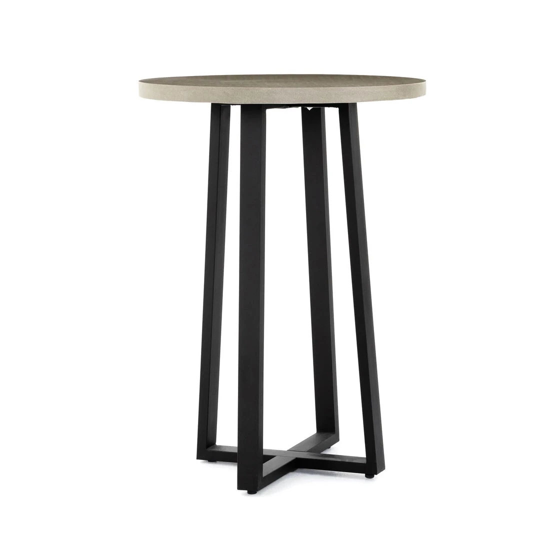 A strikingly simple poly-resin top derived from river sand is polished to a smooth sheen, while an angular black iron base adds a touch of architectural appeal. Slight color variance is to be expected, and speaks to lava stone’s organic nature. Cover or store indoors during inclement weather and when not in use.