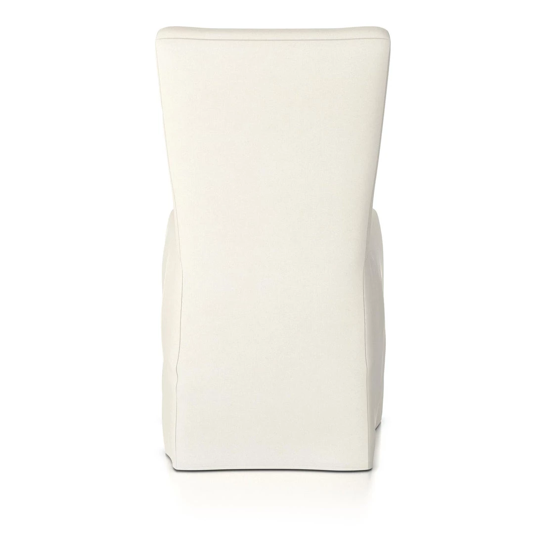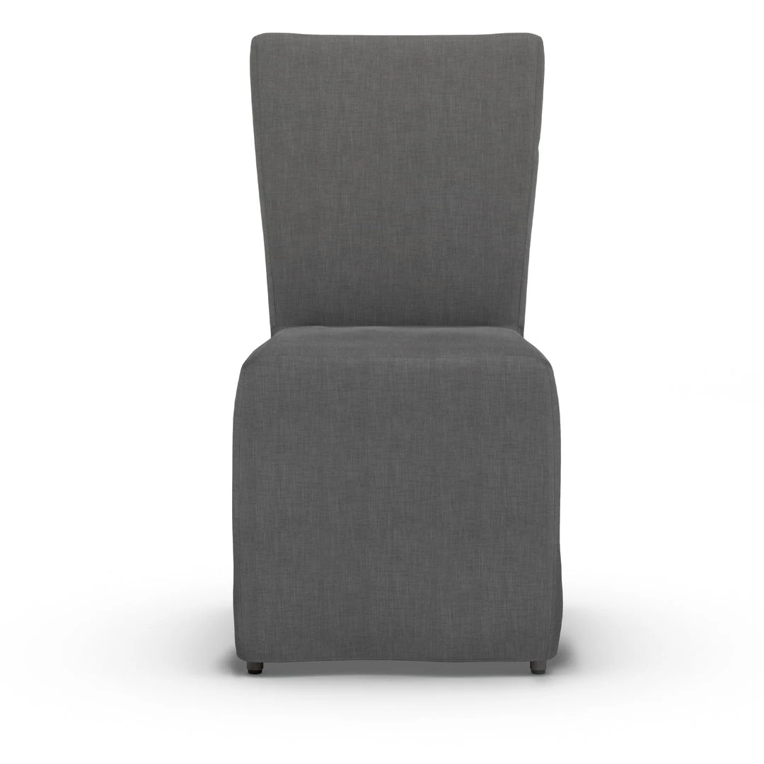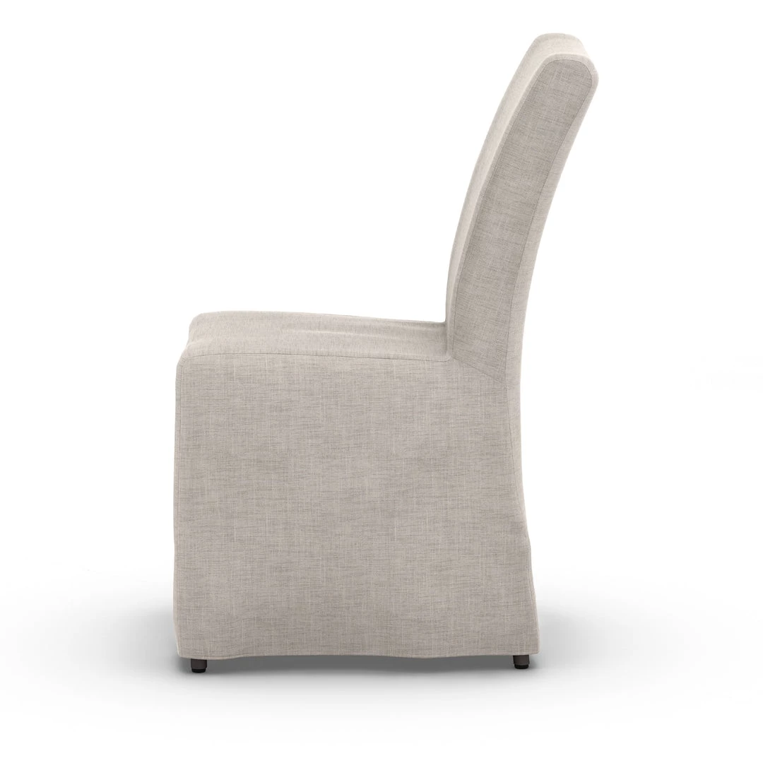 A stately silhouette for al fresco dining with a casual coastal vibe. This fully upholstered dining chair features a tall, slighly curved silhouette in a UV-resistant, water-repellent slipcover. Cover or store indoors during inclement weather and when not in use.