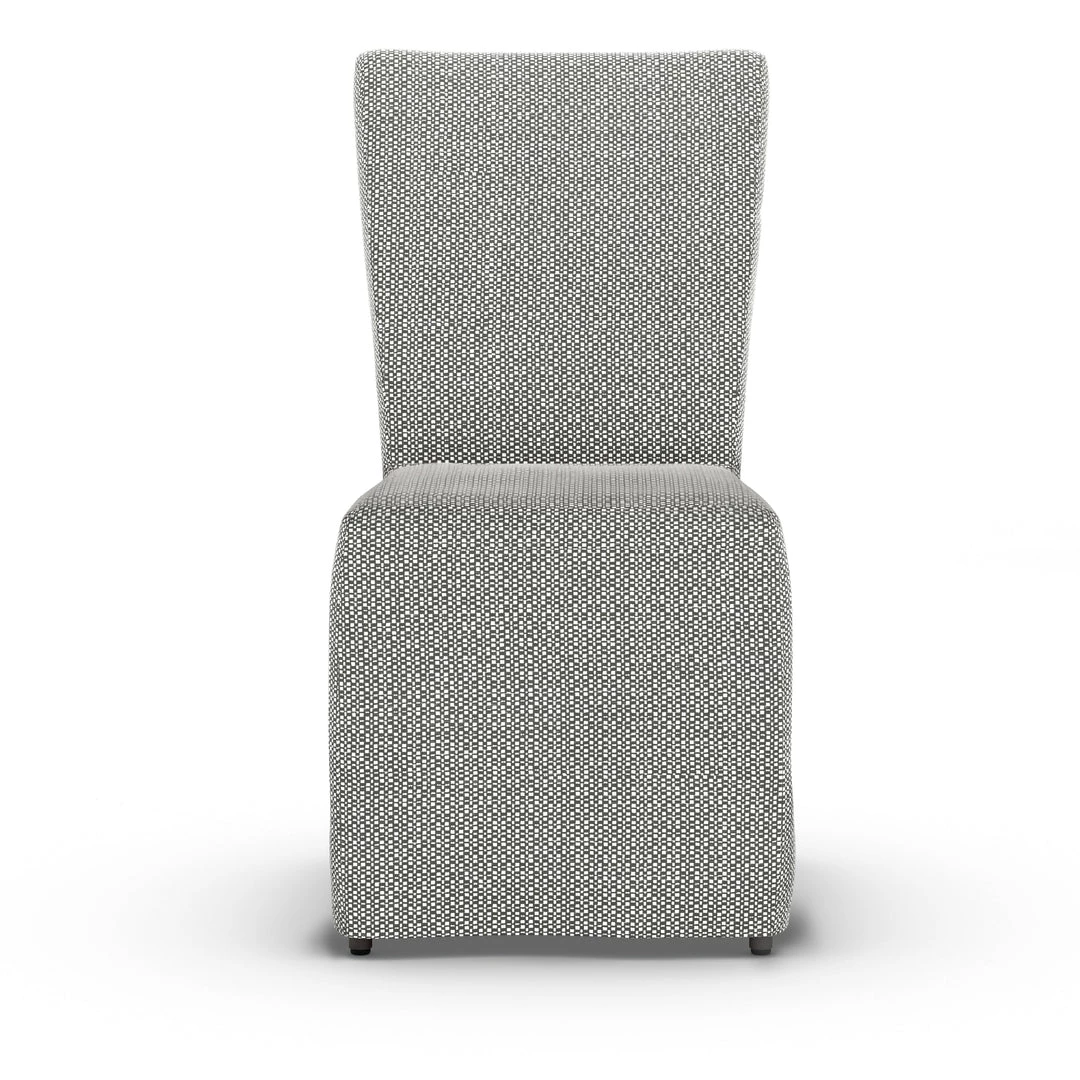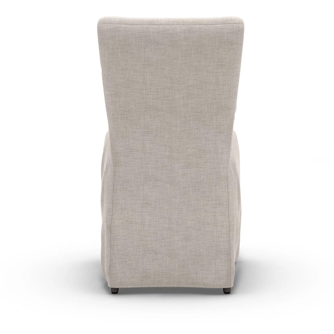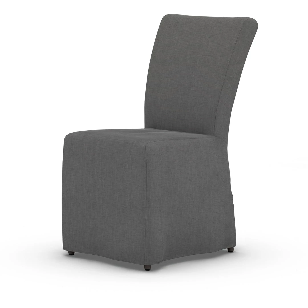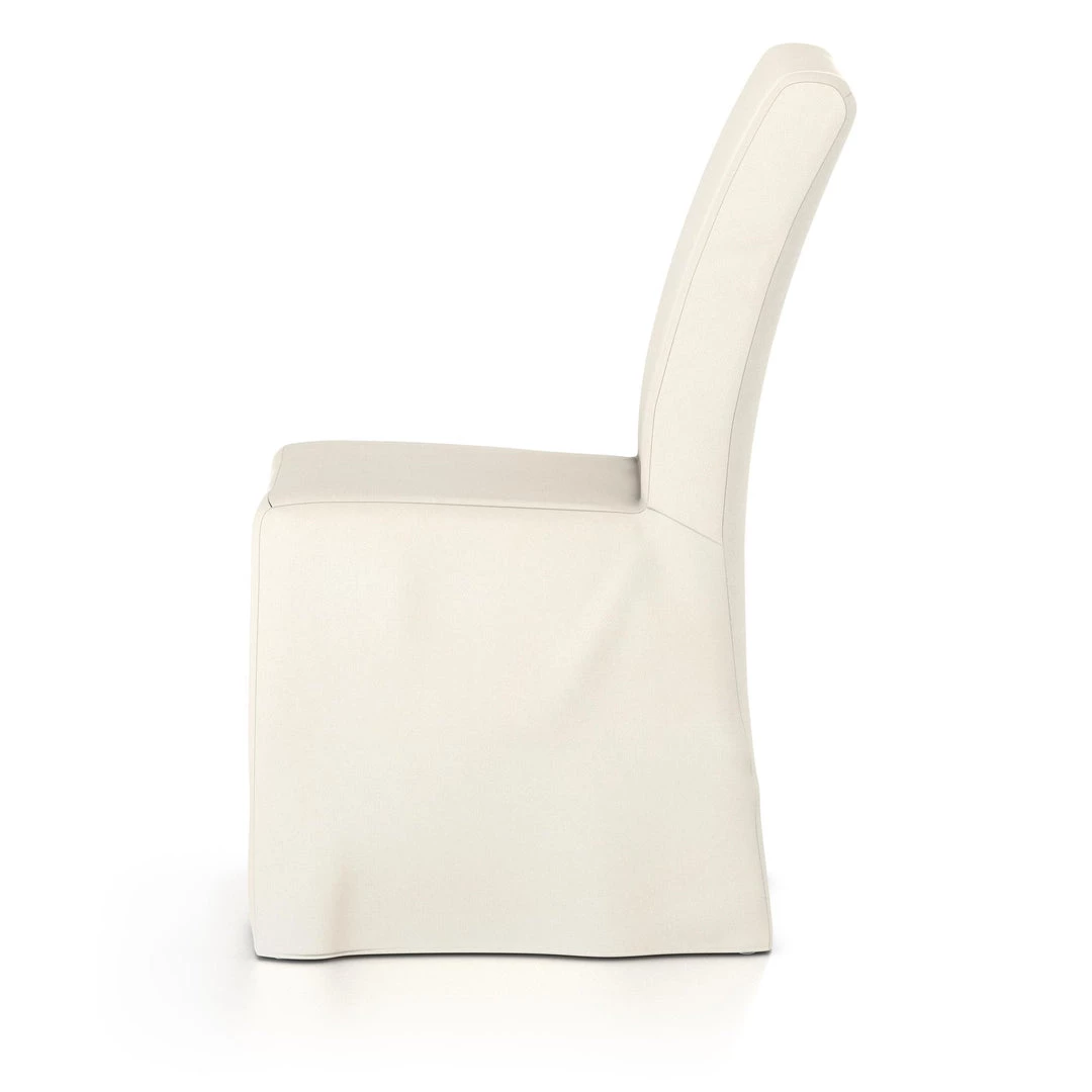 A stately silhouette for al fresco dining with a casual coastal vibe. This fully upholstered dining chair features a tall, slighly curved silhouette in a UV-resistant, water-repellent slipcover. Cover or store indoors during inclement weather and when not in use.