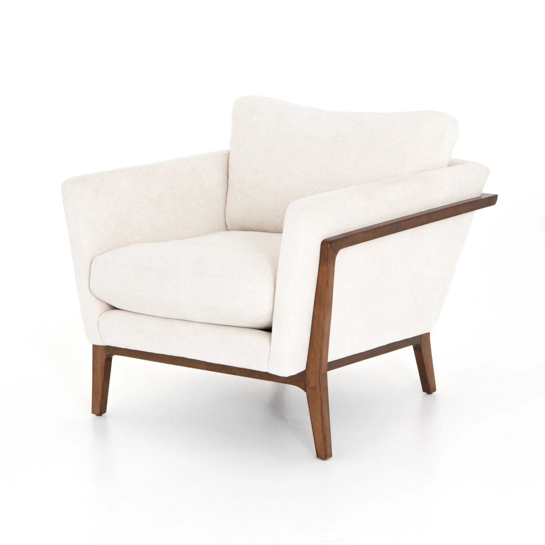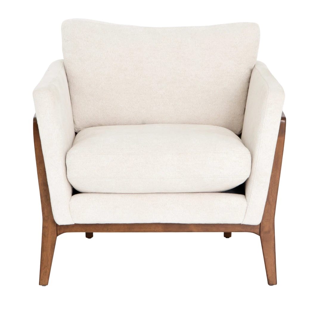 Simple, streamlined beauty from all angles. Pecan-finished birch wood cleanly cradles ivory linen-blend seating, for a sophisticated look with fresh two-tone allure.