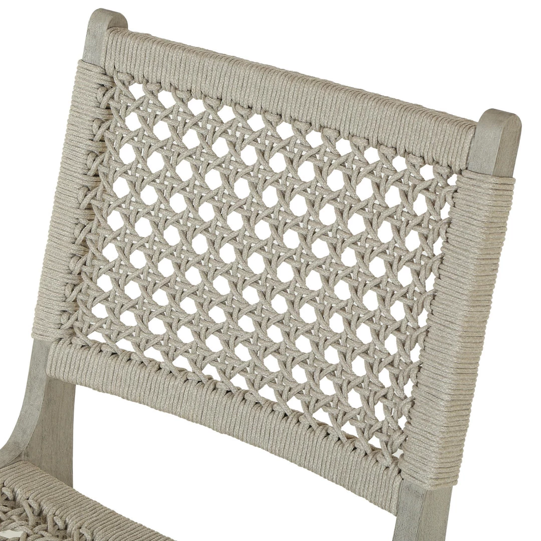 Simply stylish, indoors or out. Natural FSC-certified teak frames woven ivory rope, making a texture-driven statement. Cover or store inside during inclement weather and when not in use.