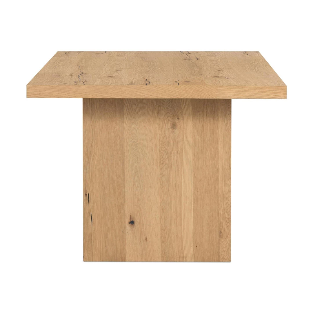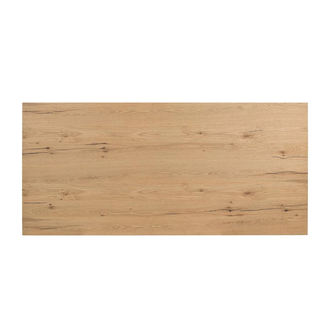 Beautifully simple, with rich organic vibes. Black resin fills in the natural cracks and graining of a clean-lined dining table of light-finished solid oak, modernized by a stretcher. Subtle variance of resin placement and volume speaks to materials’ inherent nature. Option to pair with matching dining bench.