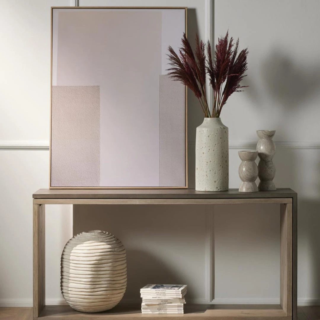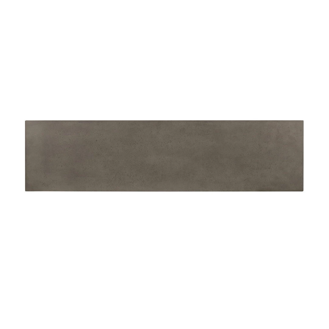 Thick-cut oak veneer forms a clean, structured frame for a fold-over concrete top finished in a deep, dark grey.