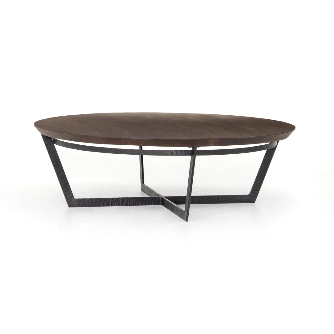 Elegant edge. A raw, rustic iron base supports a round, white marble top, which is sandblasted for textured nuance and sophisticated polish.