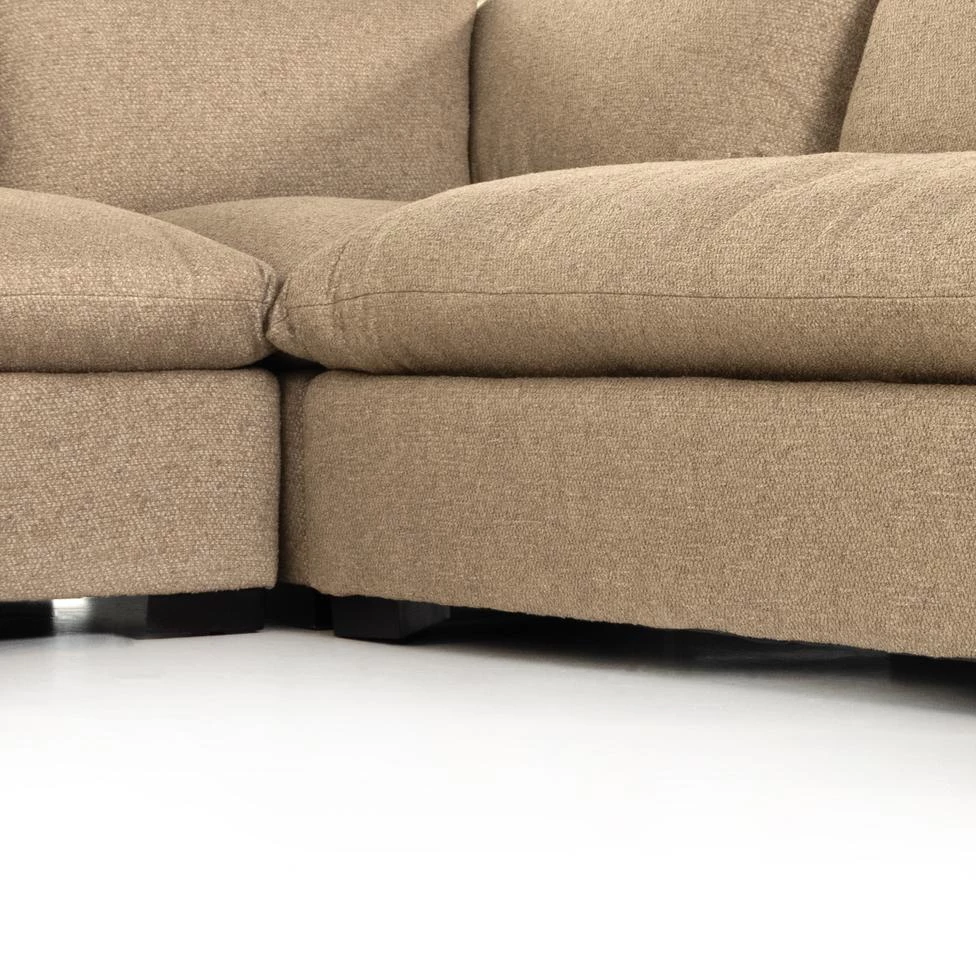Welcome to the modern lounging essential. A simplified sectional is upholstered in soft, durable, stain-resistant Crypton fabric in an invitingly dark charcoal.
