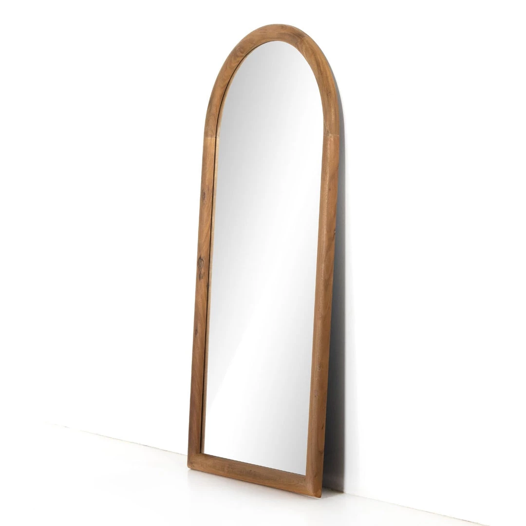 Solid acacia is smoked, shaped and smoothed to bring a vintage art deco-inspired frame to this mirror.