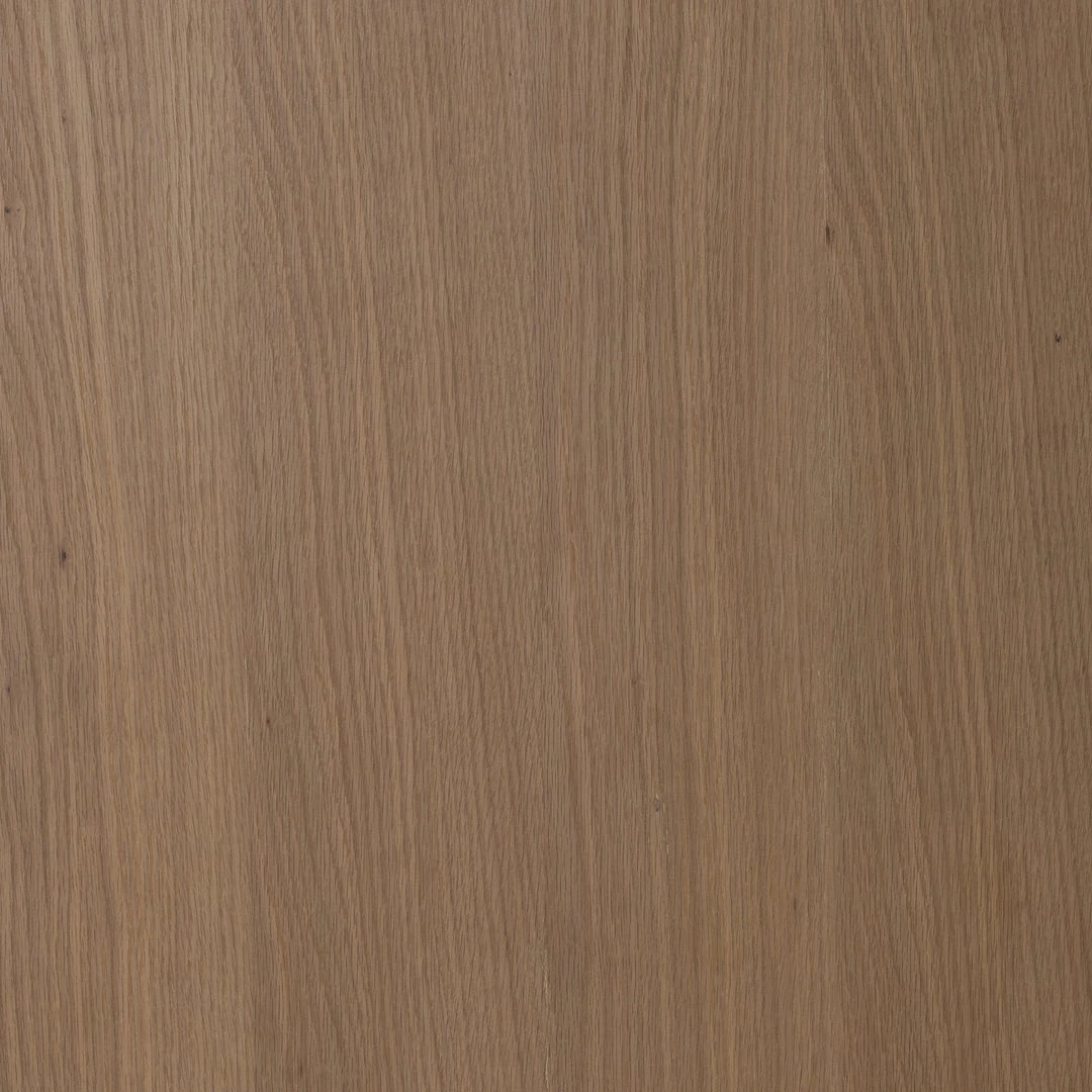 Honey-finished oak forms a tall, clean frame for spacious shelving, with a lower arch and natural hand-woven cane paneling lending a playful, textural vibe to this Seventies-inspired piece.