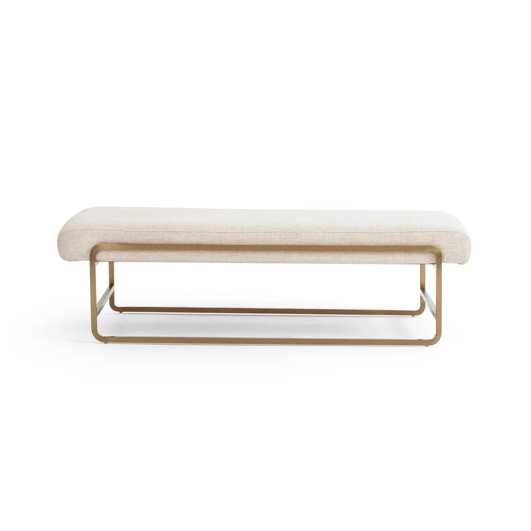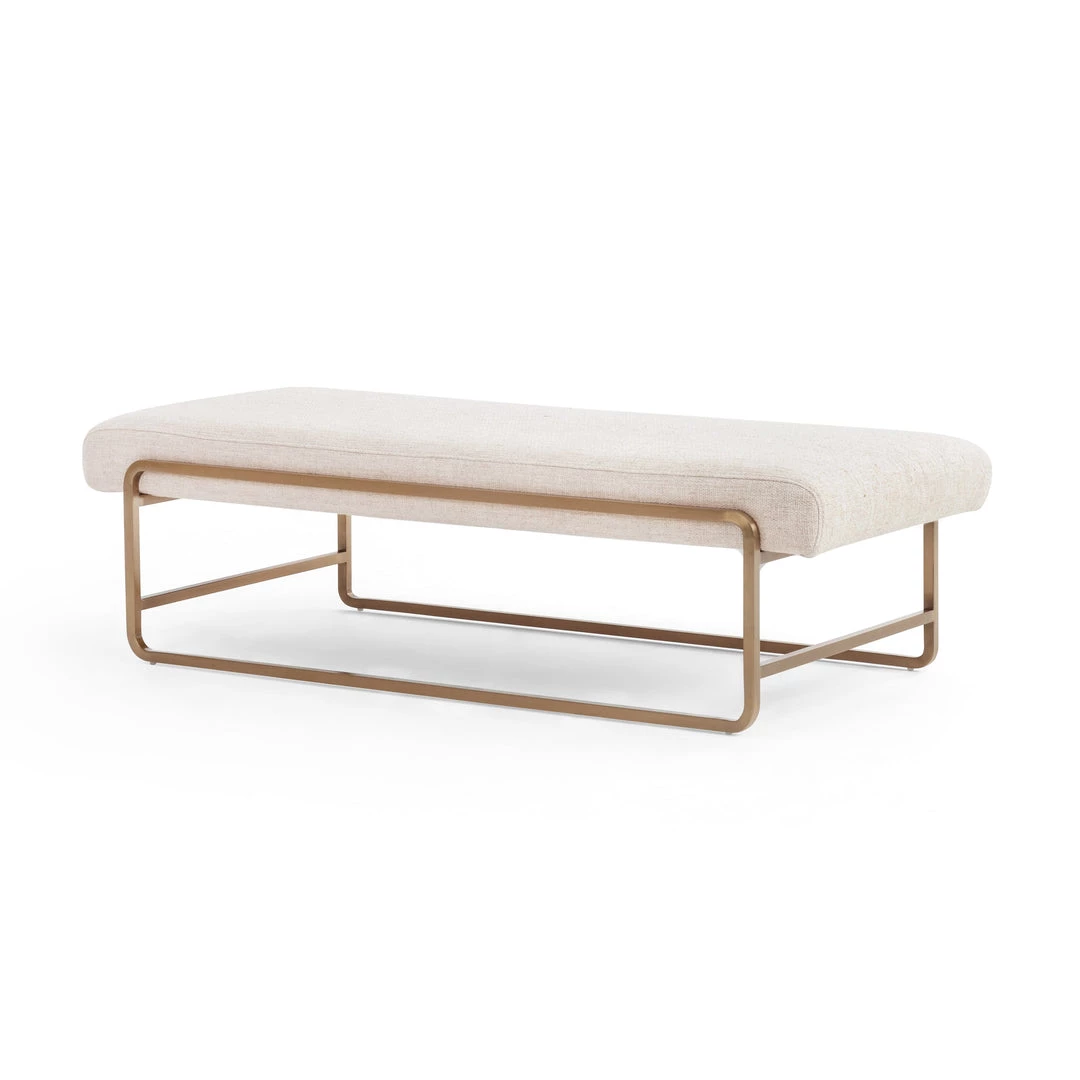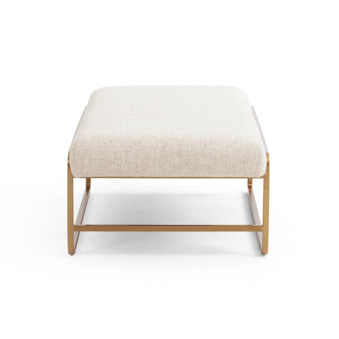 Dramatic bullnose edging meets elegant brass-finished steel framing for fresh, thoughtful balance, while performance-grade seating delivers a hint of glam and generous trend-forward texture. Versatile design makes this sled-style ottoman ideal in any space.
