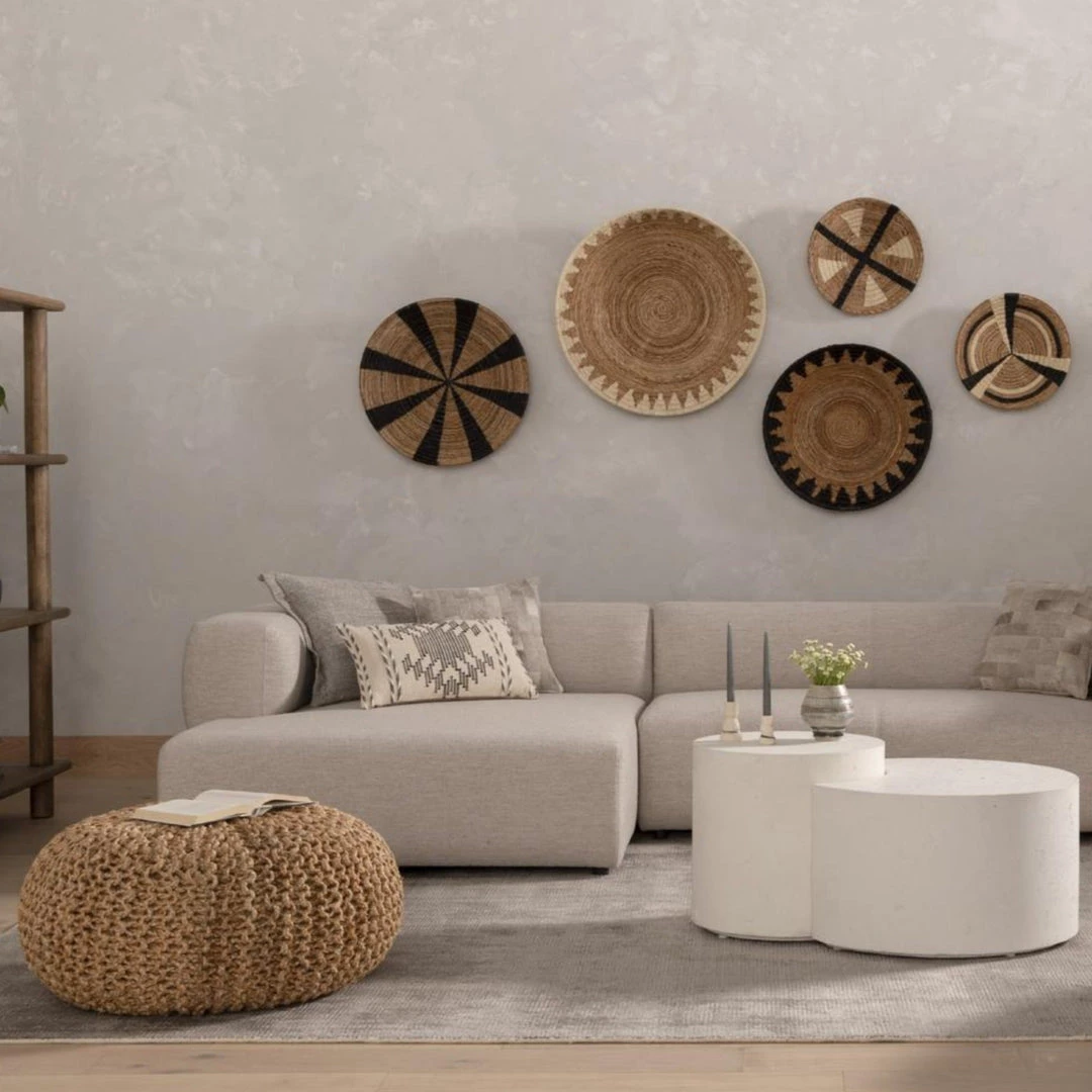 White jute is knitted into a softly-shaped pouf, bringing a touch of texture and comfort to any space. Great solo or in pairs.