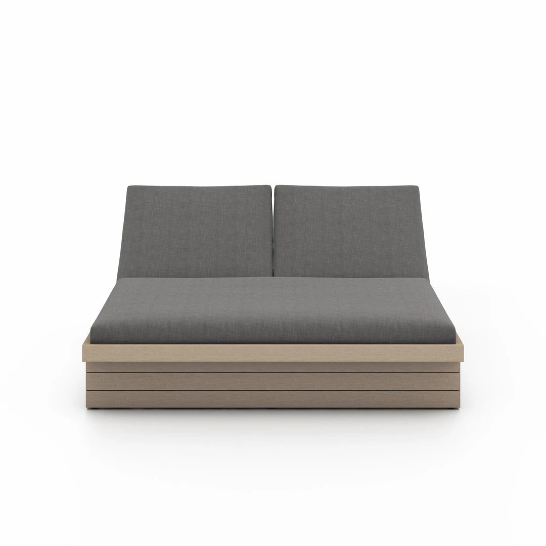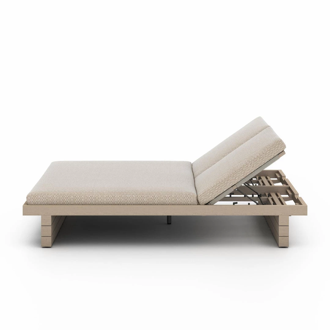 Recline in style, indoors and out. Finished in a washed brown, FSC-certified teak forms an adjustable double frame for UV-resistant and water-repellent cushioning in a versatile charcoal, with rear rope detailing for added dimension. Clever split back allows for varied recline angles. Cover during inclement weather and when not in use.