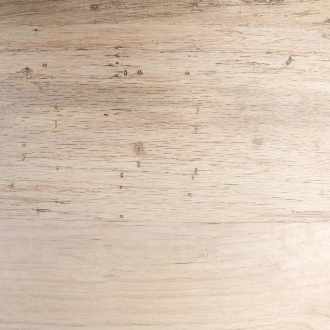 Organic in tone, sculptural in spirit. Inspired by bold Eighties-era design, a rectangular dining table of thick oak veneer features beautifully shaped legs in a bleached finish, with a pale tabletop for subtle contrast of tone. Seats six to eight comfortably.