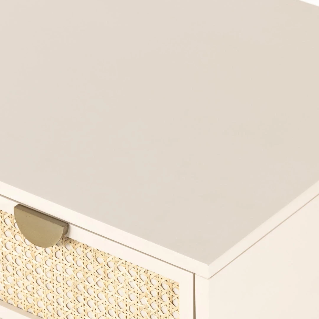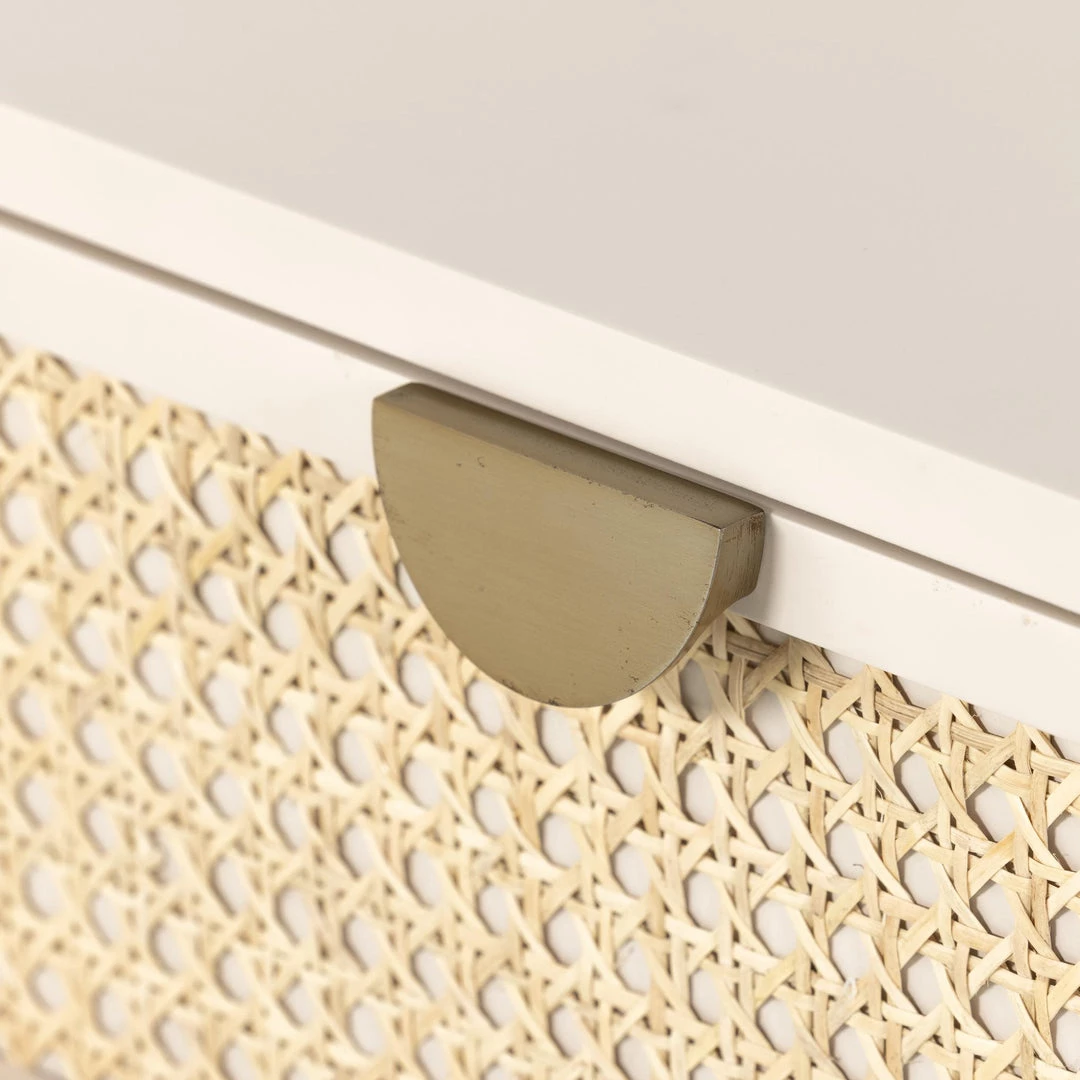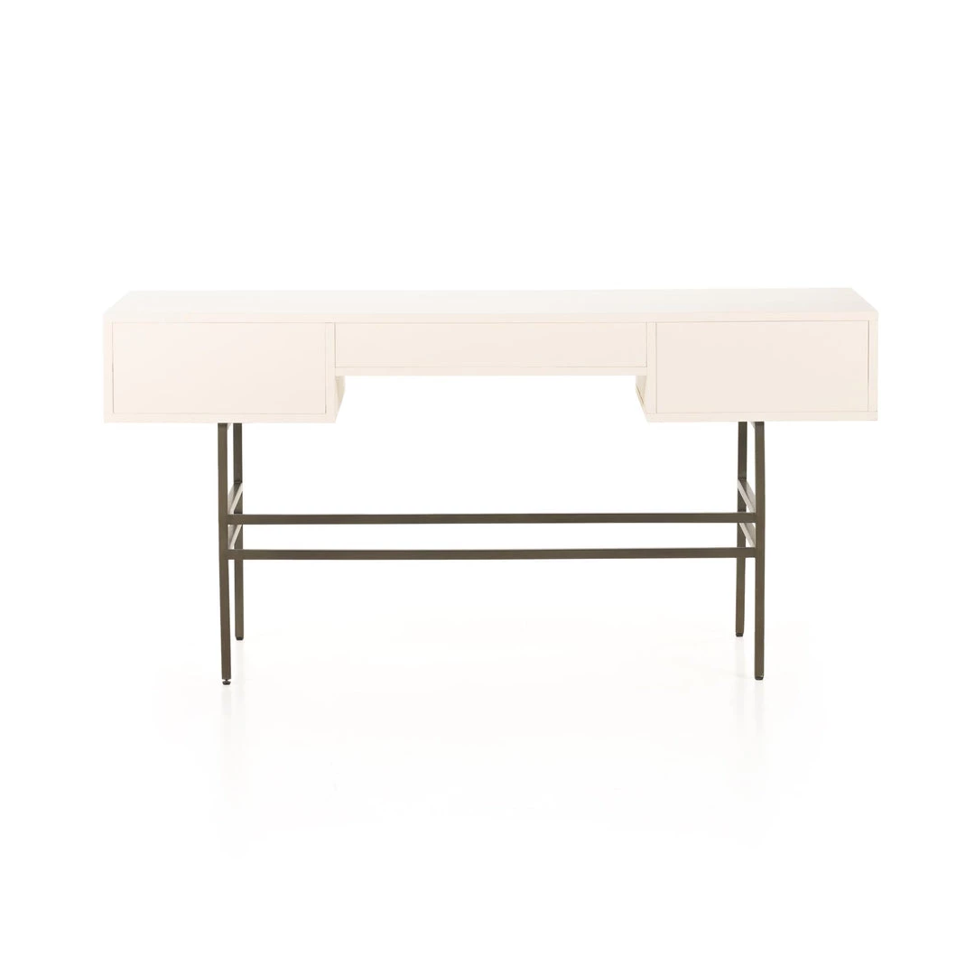 Bring a light look to the modern office. A lacquered three-drawer desk features woven cane panels and half-moon hardware finished in an aged brass.