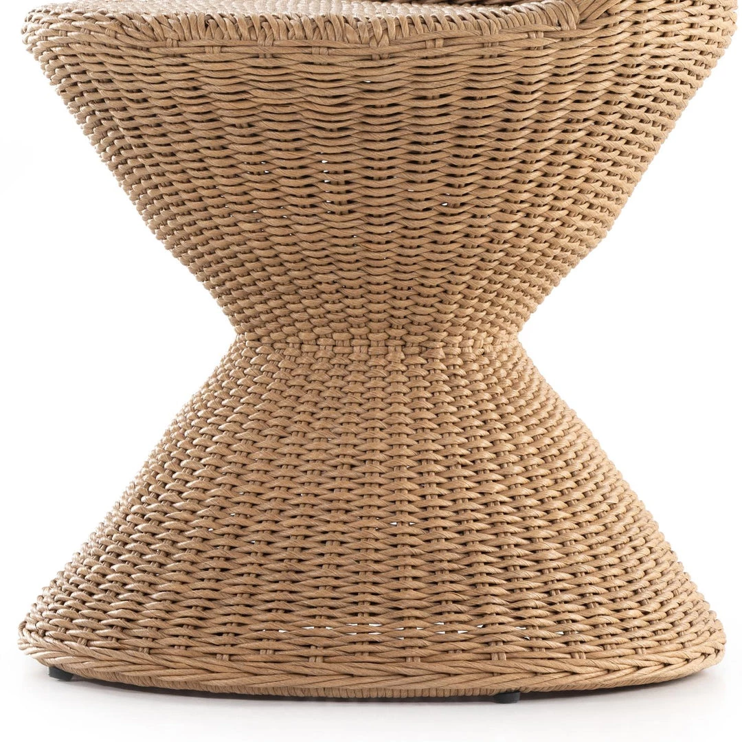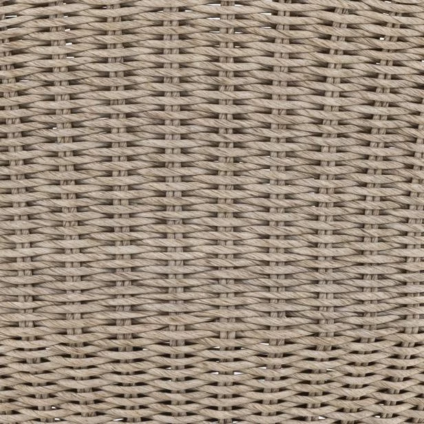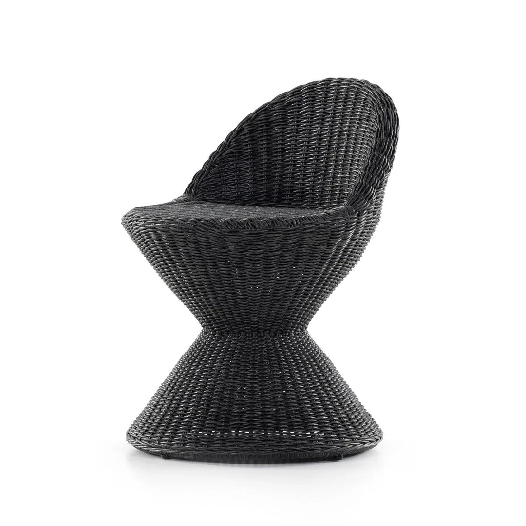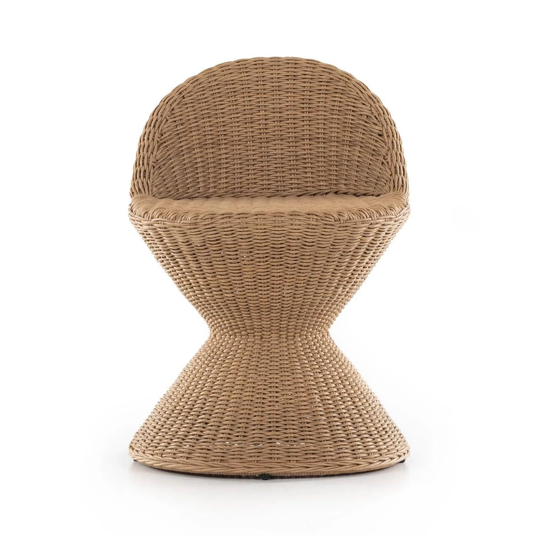 Inspired by a 1970s Russell Woodward design, this striking outdoor dining chair features a tight all-weather wicker weave in an hourglass shape. A low back brings a modern update to this classic design. Cover or store inside during inclement weather and when not in use.