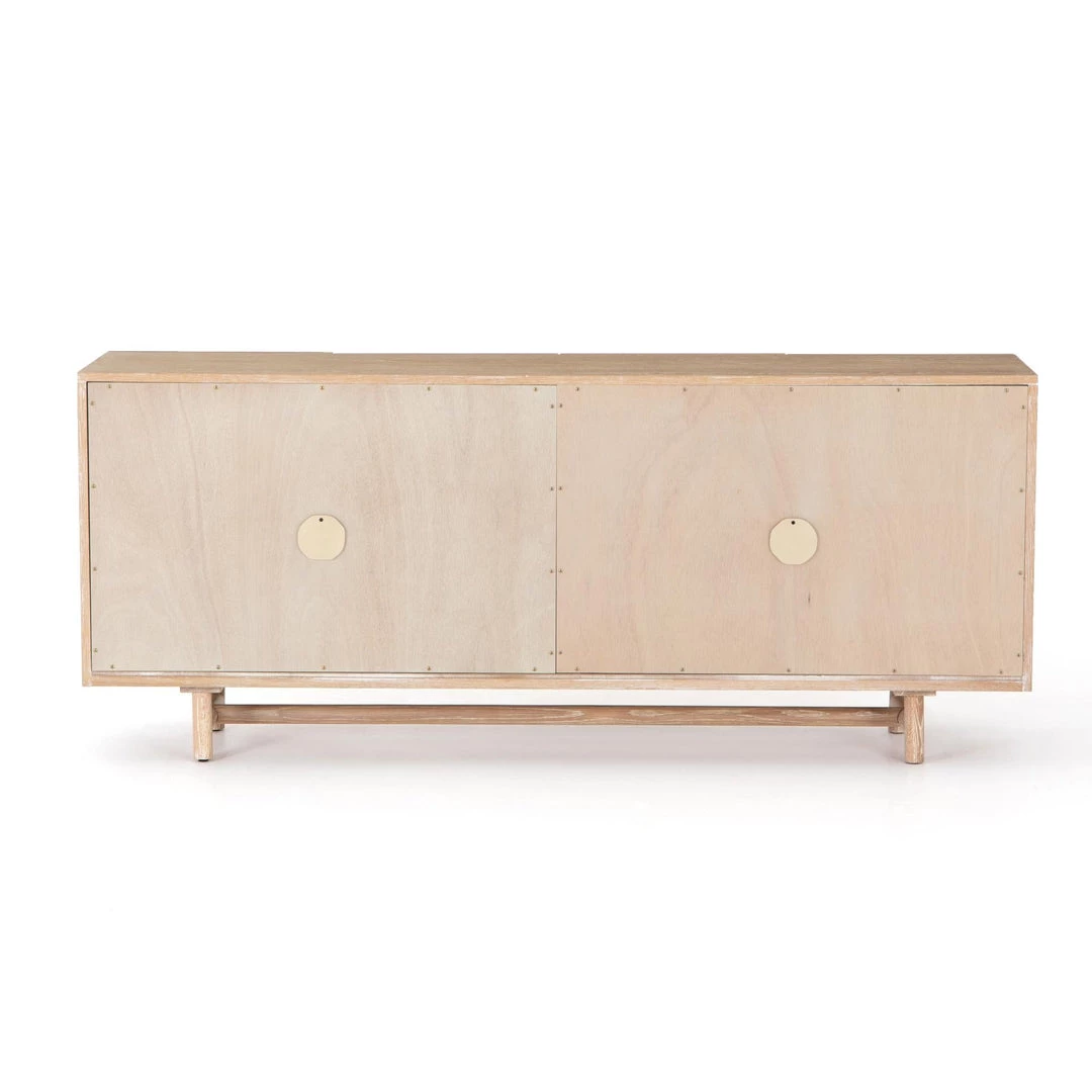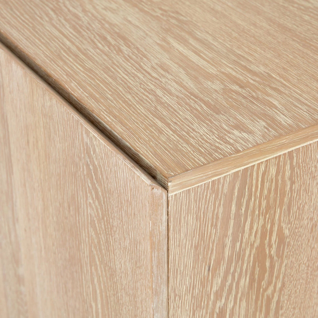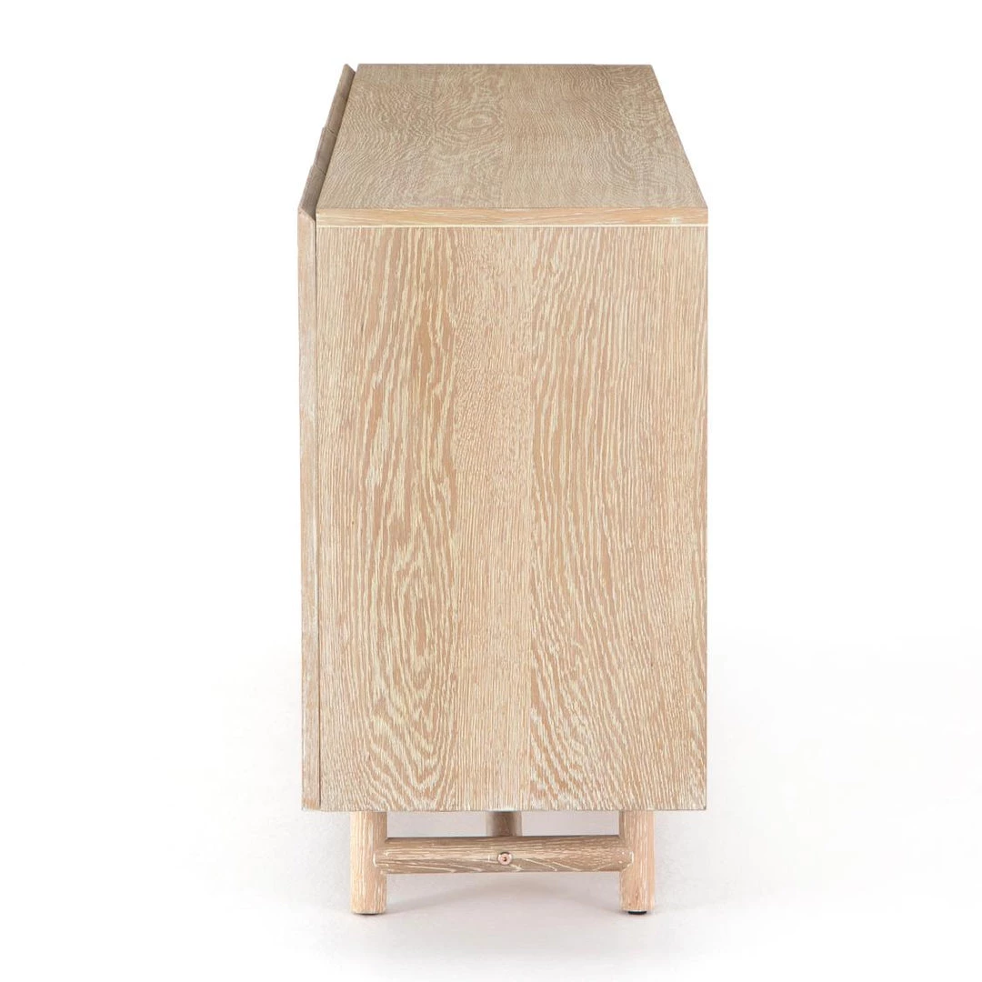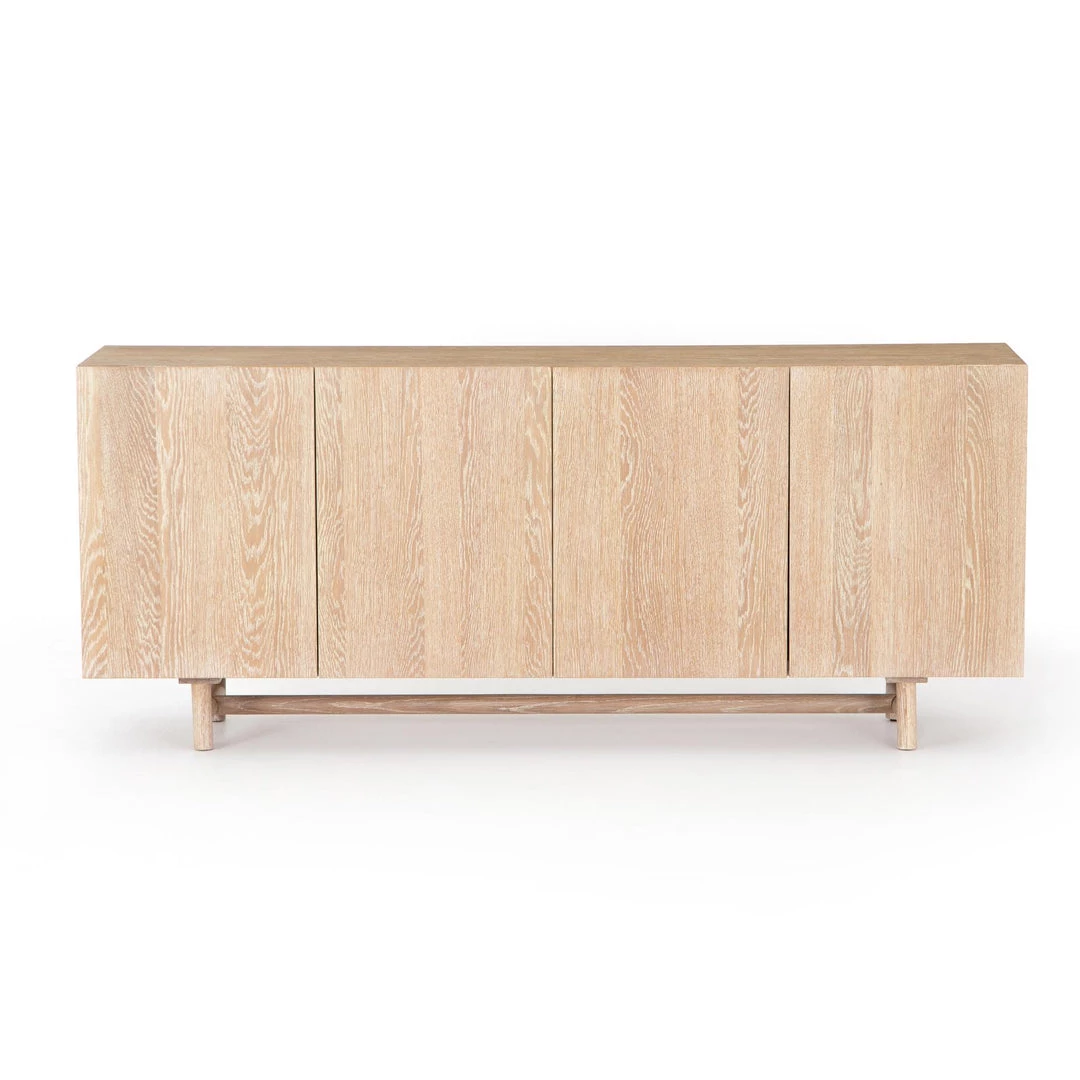 Rustic goes modern. A low stretcher and beautifully grained matte finish brings architectural interest to this simply styled sideboard of white-washed oak.