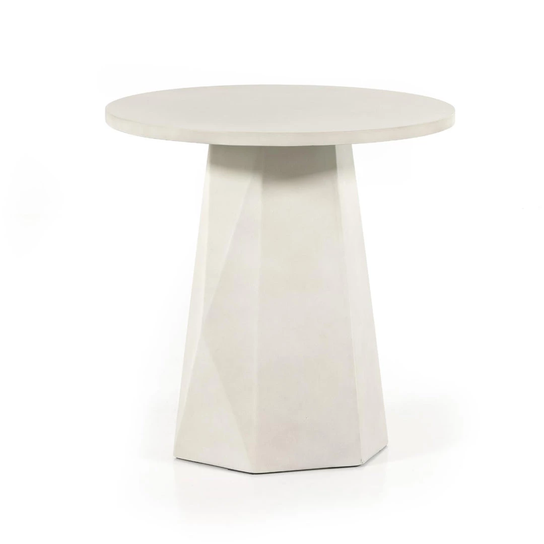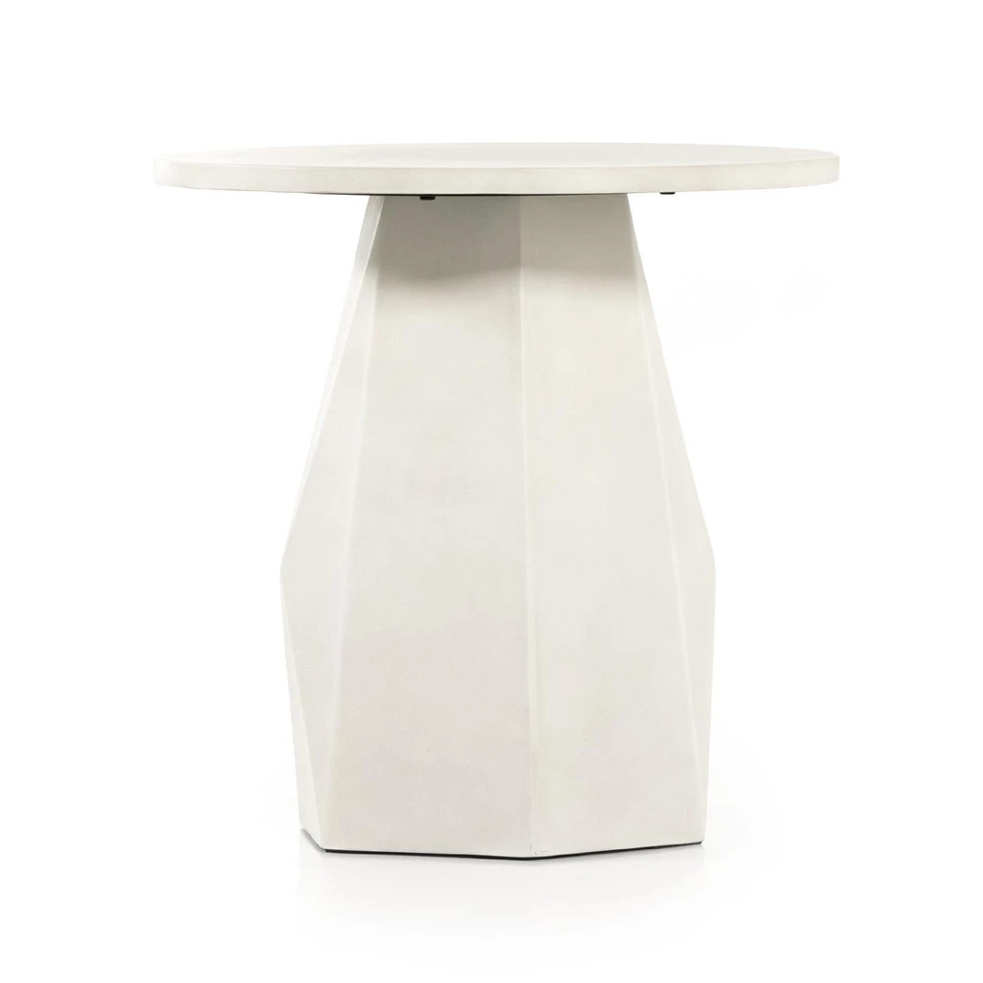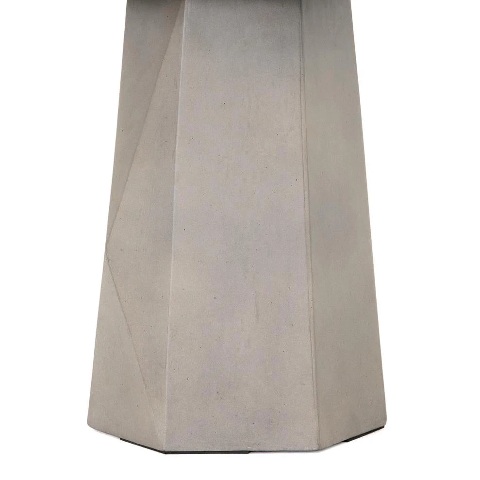 Grey concrete forms a faceted base for impact from every angle. A rounded top is ready to make an organic statement indoors or out. Cover or store inside during inclement weather and when not in use.