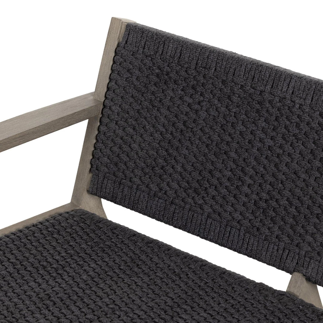 For a texture-driven take on the outdoor-friendly loveseat, brown-finished FSC-certified teak forms a beautifully simple frame for thick, handwoven rope in an inviting light grey. Cover or store indoors during inclement weather and when not in use.