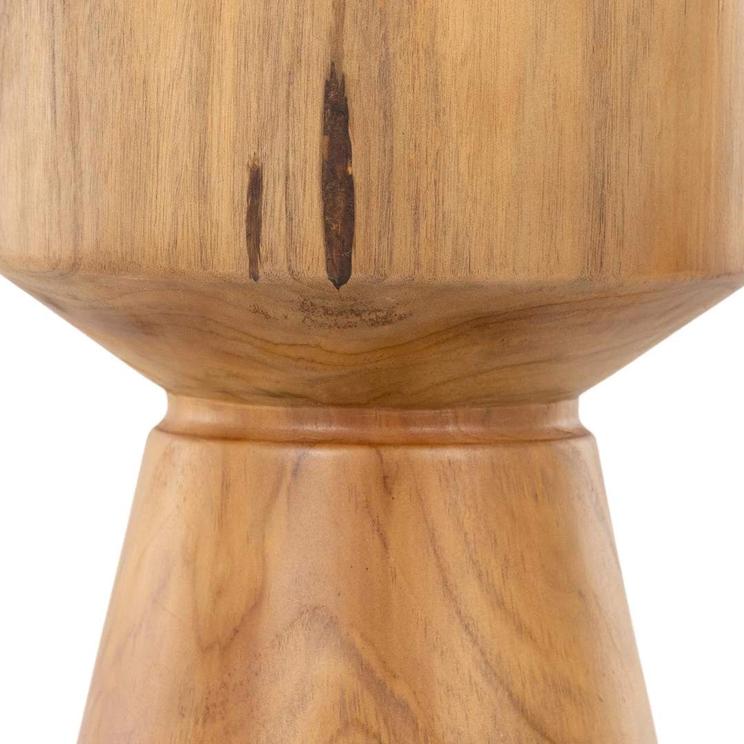 Solid FSC-certified teak is carved, shaped and smoothed into a naturally beautiful end table or stool, designed for both indoors and out. Cover or store inside during inclement weather and when not in use.