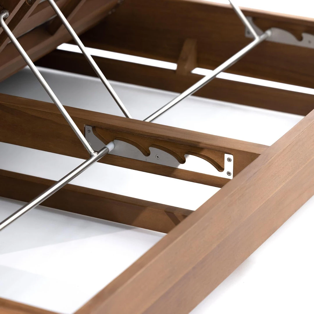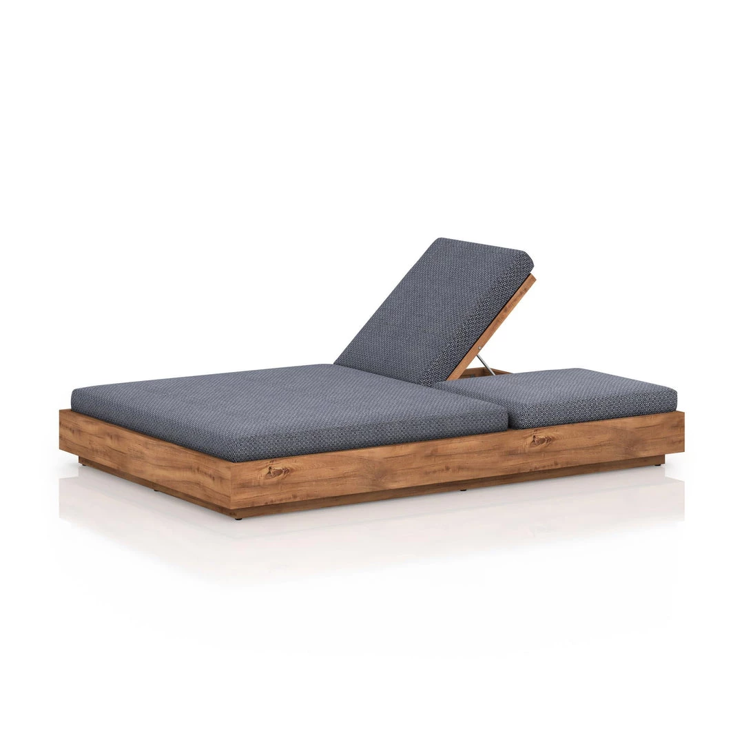 A slim, stylish profile prime for double lounging. Boxed base of FSC-certified teak frames durable, outdoor-friendly cushioning in an inviting charcoal. Adjustable backs and back pillows offer individual comfort and ease. Cover or store indoors during inclement weather and when not in use.