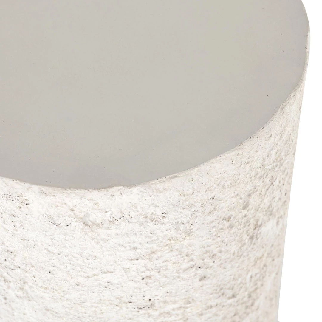Bring a touch of industrialism to outdoor styling. A rounded end table of solid white concrete features raw edging for texture and novelty alike. Cover or store indoors during inclement weather and when not in use.