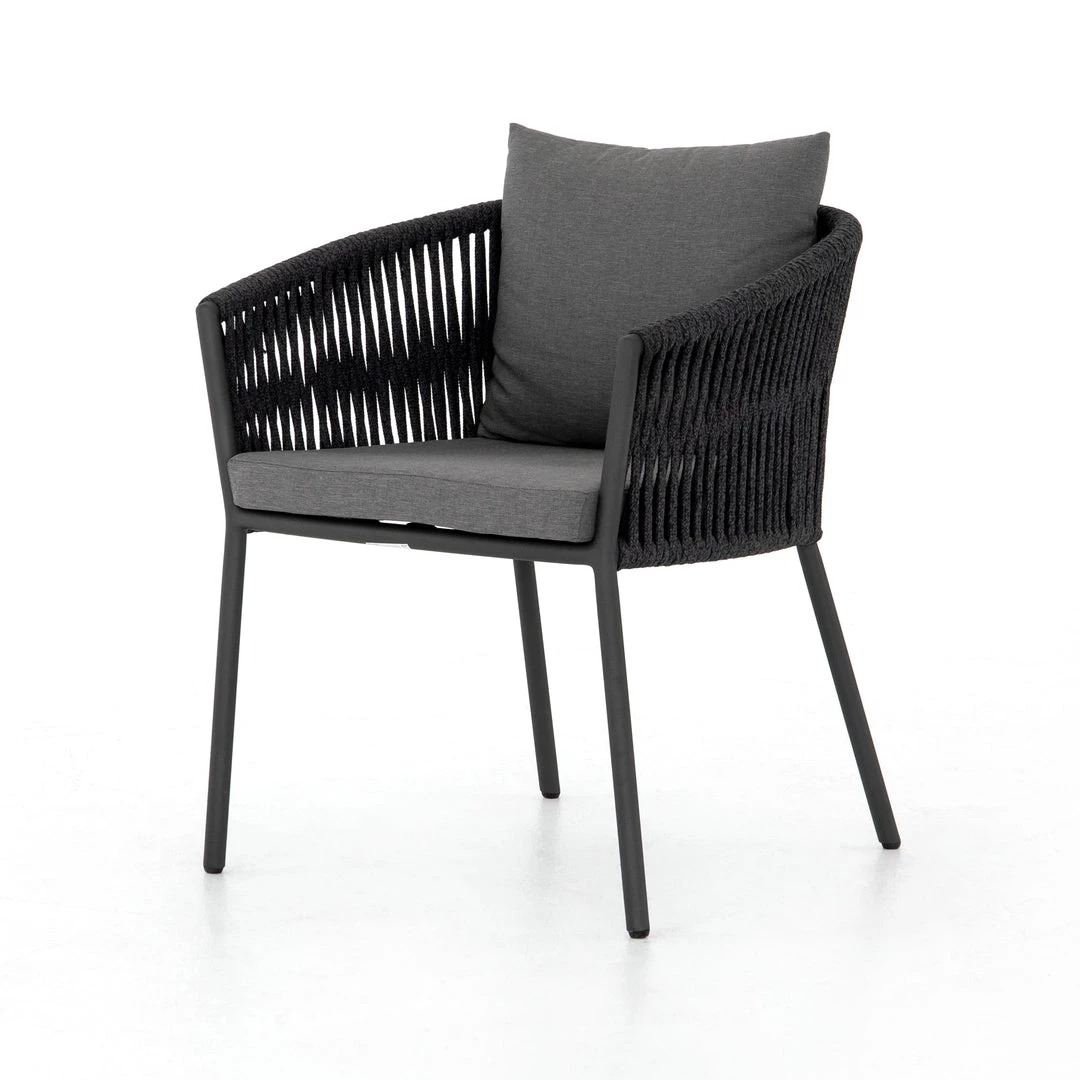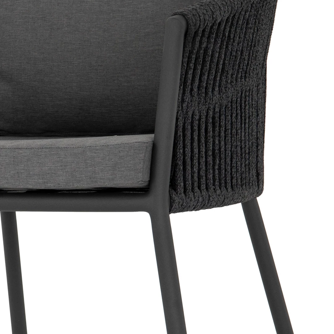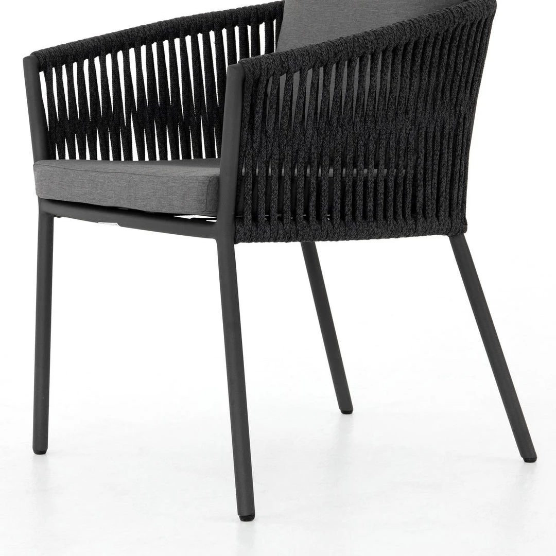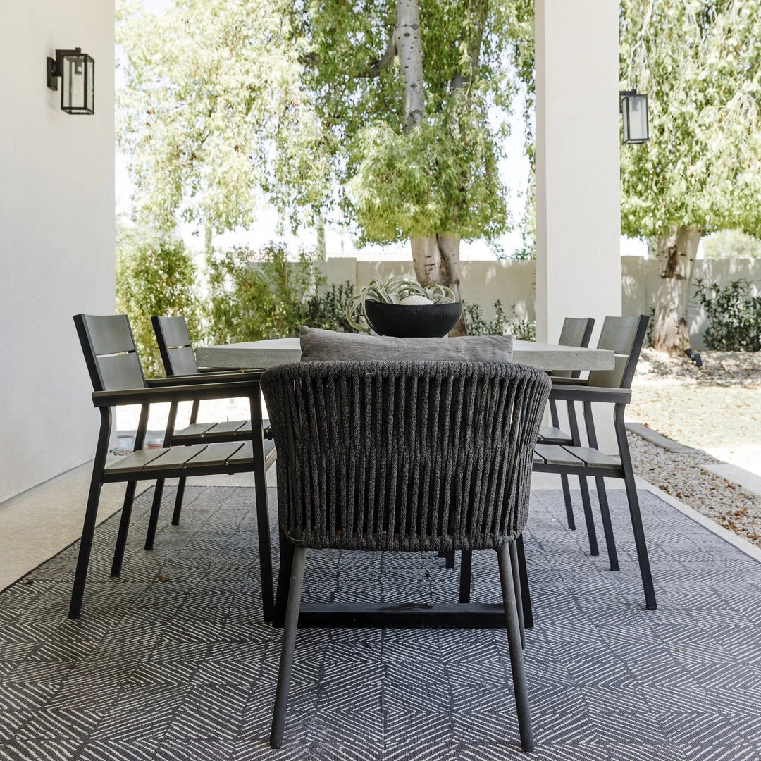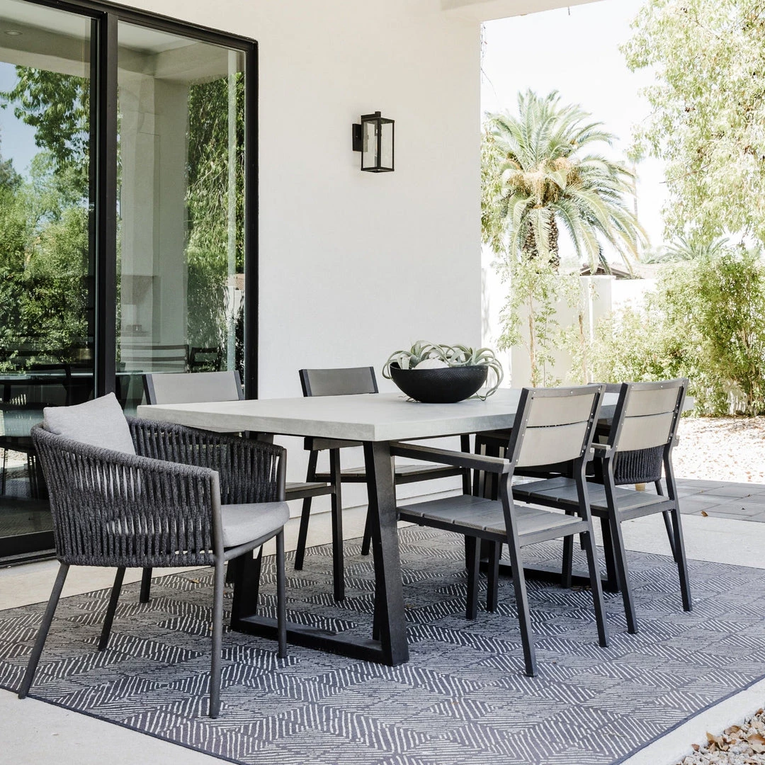 Add a dash of modernity to outdoor dining. Finished in a crisp, clean white, linear aluminum framing welcomes weather-resistant sand-colored cushioning, for a fresh, fluid look. Cover or store indoors during inclement weather and when not in use.