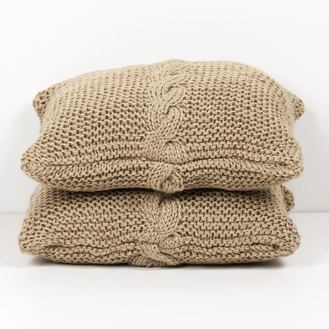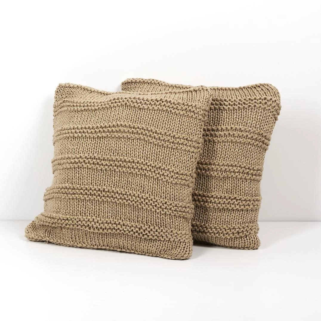 Toss in some texture, indoors or out. Made entirely from recycled materials, a chunky knit and center braid make a two-pillow set of throw pillows the perfect finishing touches to outdoor seating. Store inside during inclement weather.