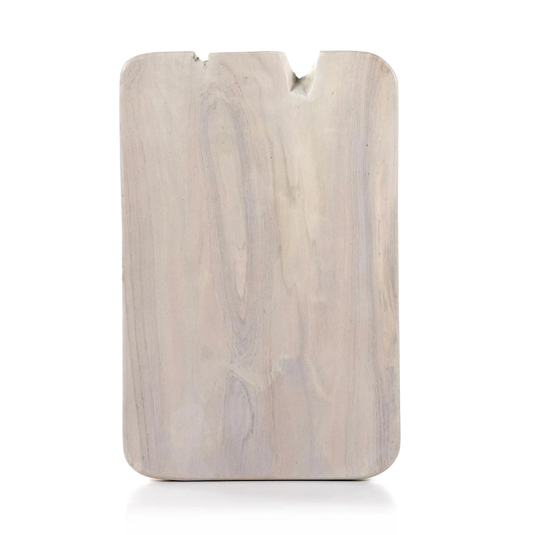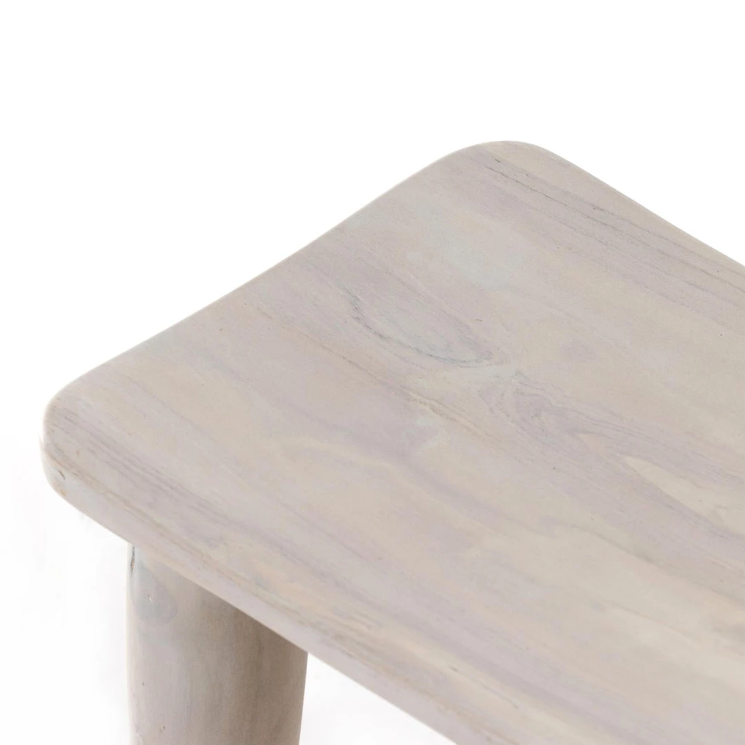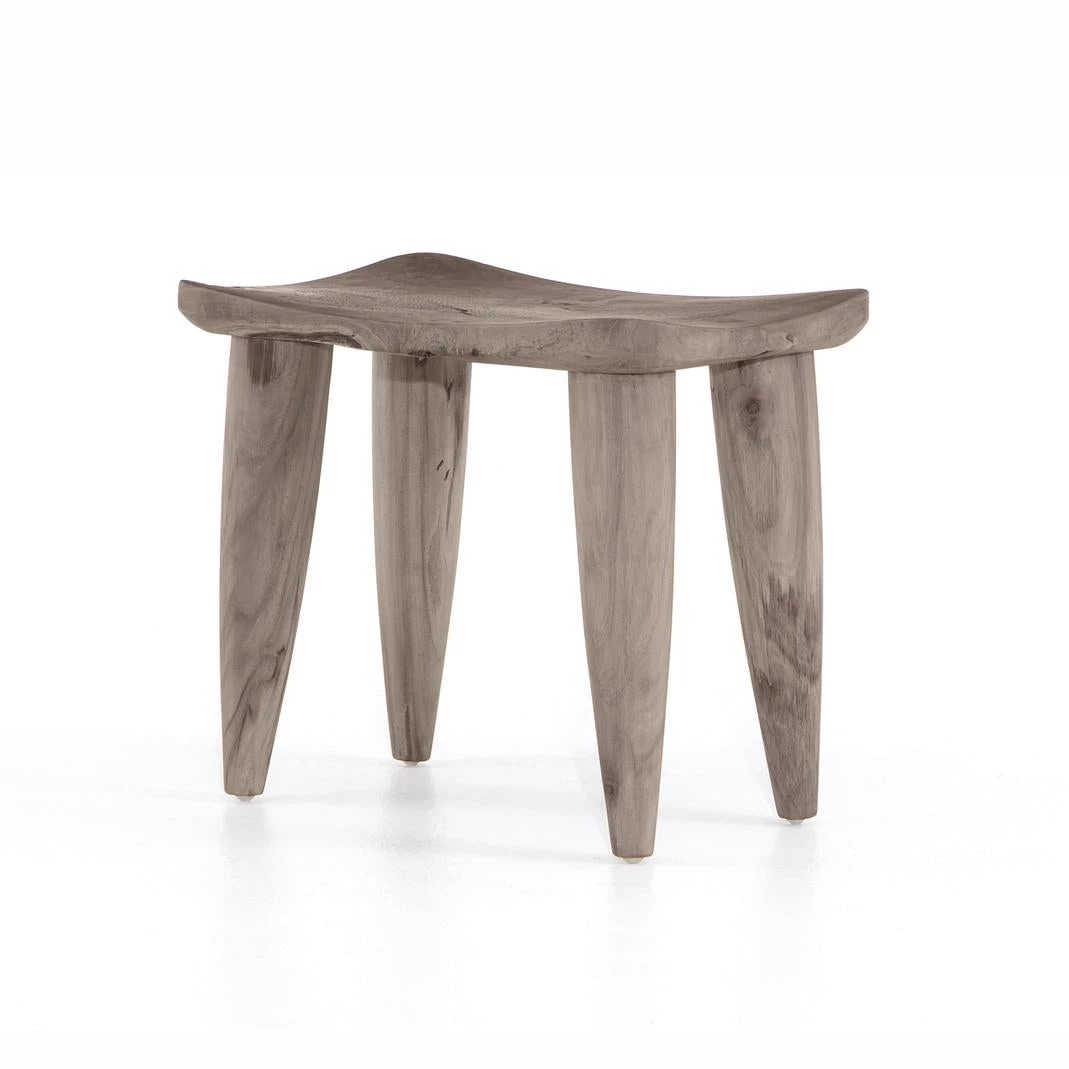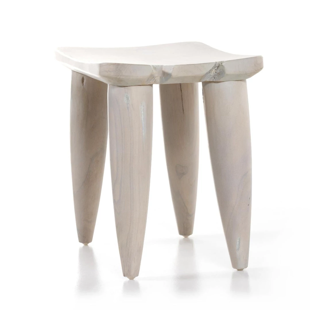 Inspired by West African design, an outdoor-friendly stool made from solid aged teak flaunts natural knots, holes and graining reflective of materials’ rich roots. Wood texture, color and graining will vary from piece to piece, and surfaces will naturally range in height up to one inch – again speaking to teak’s beautifully organic nature. Cover or store inside during inclement weather and when not in use.