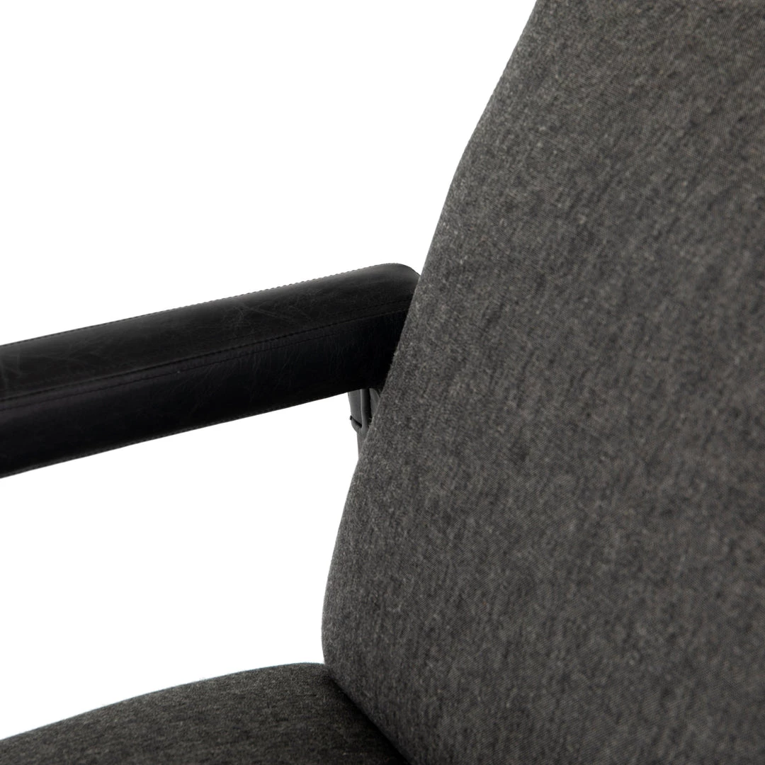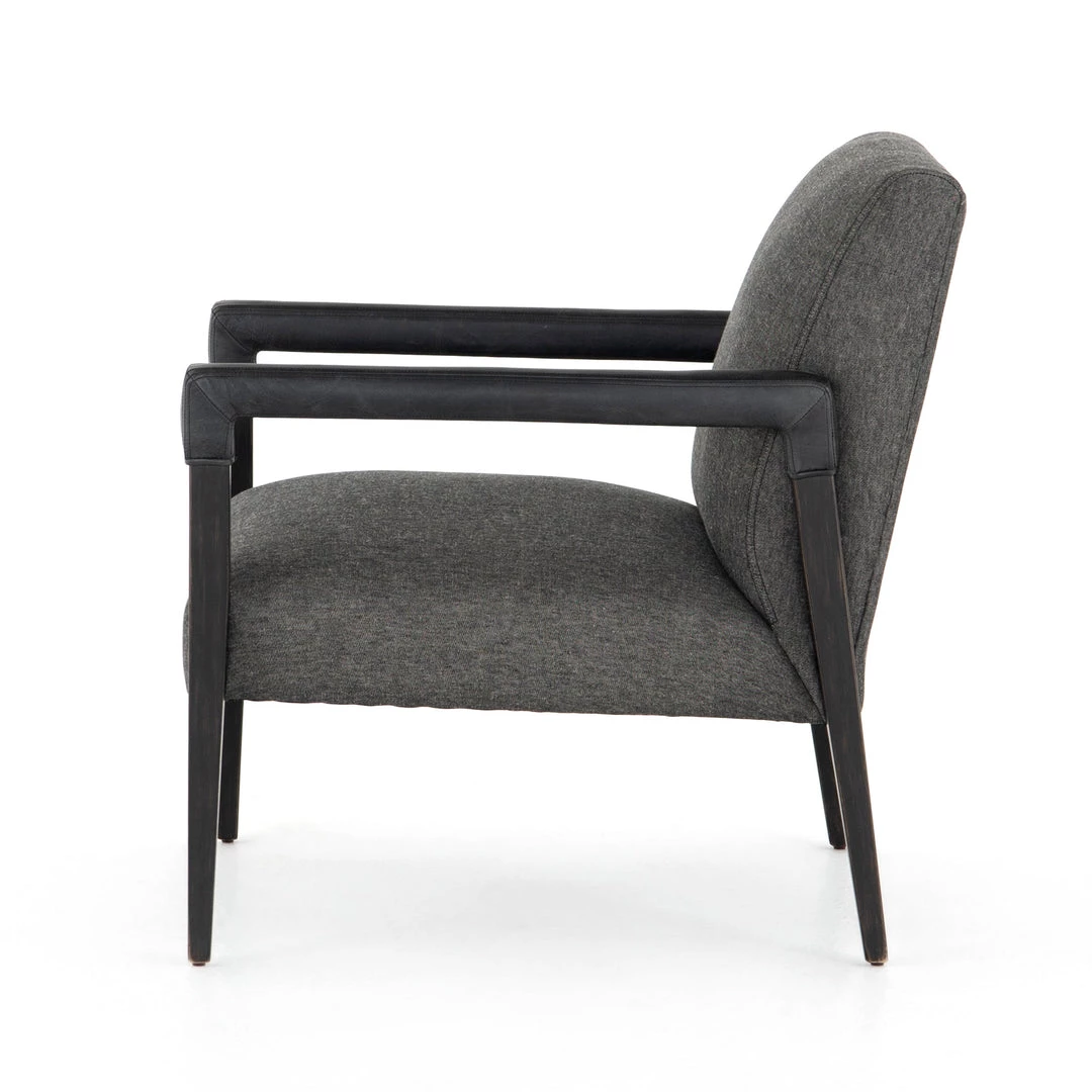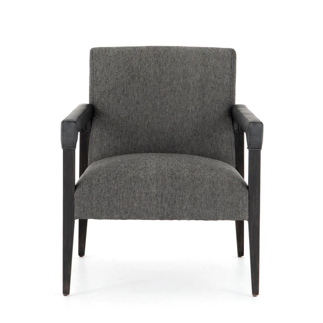 Elegance is no exaggeration. Slim, tapered nettlewood with arms wrapped in vintage leather frames a floating seat covered in a natural cotton and linen blend.