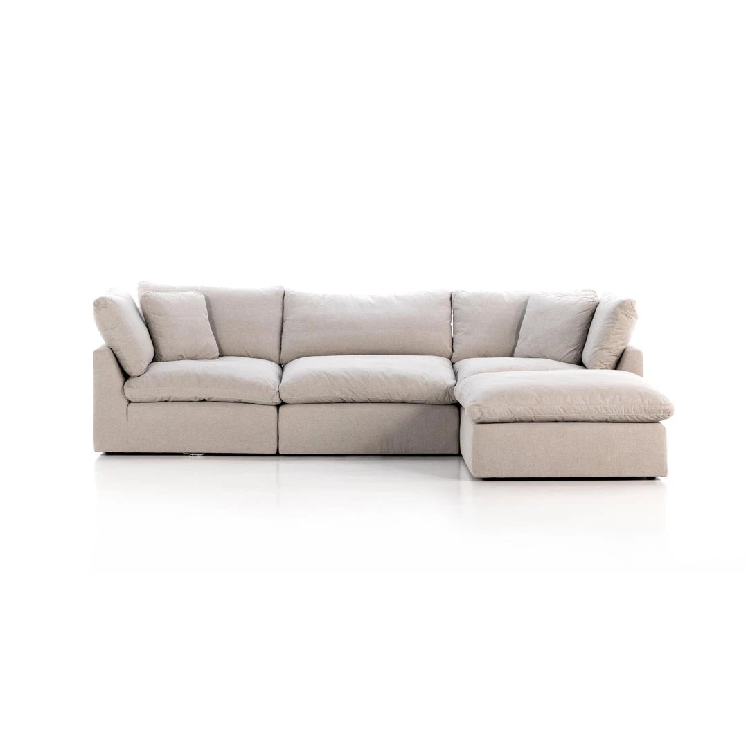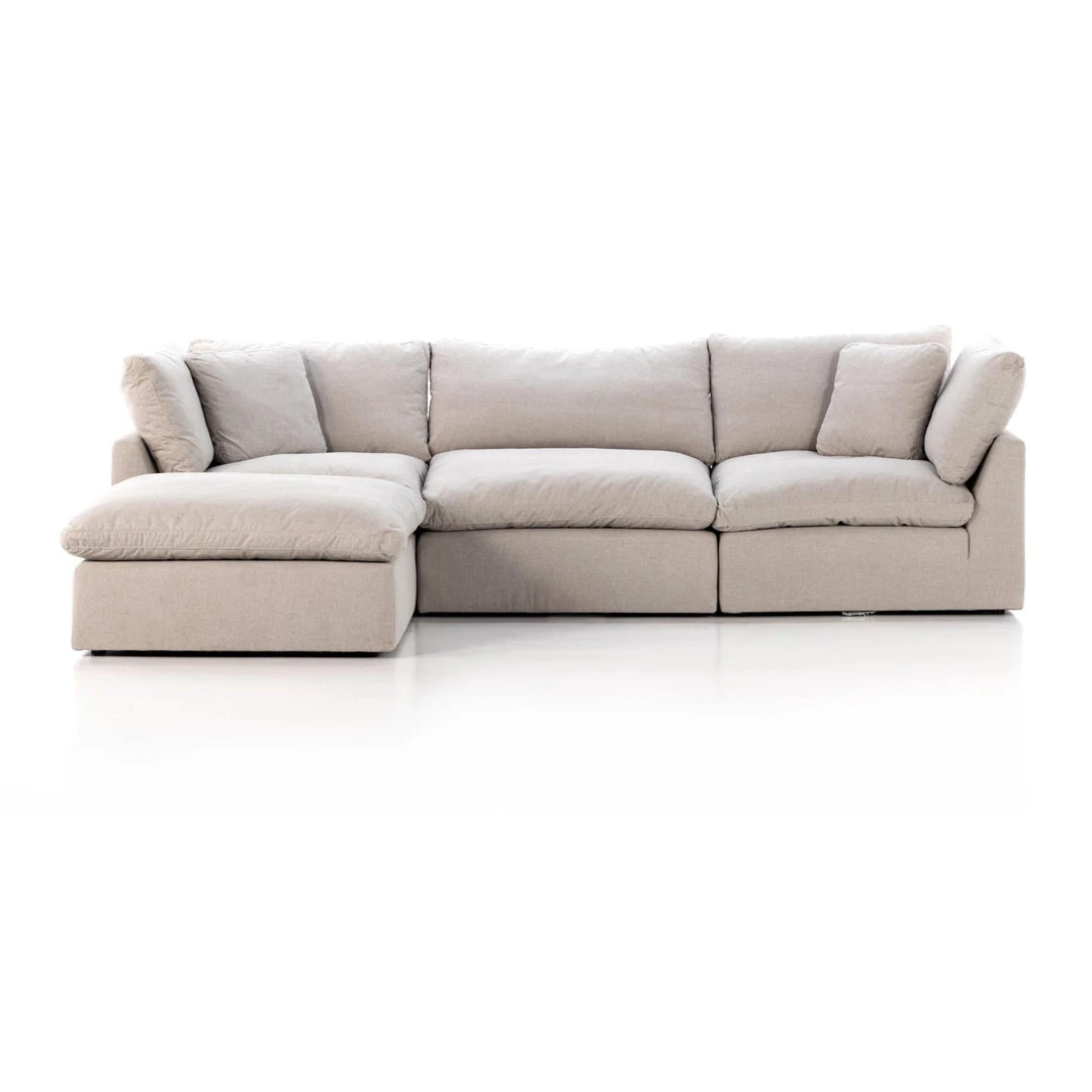 Equal parts casual and chic. Feather-blend cushioning, soft-but-durable upholstery and modular options make Stevie an easy go-to in any sized space. Fluff cushions regularly to maintain appearance, and steam fabric for a more tailored look. Left arm-facing sectional plus ottoman.