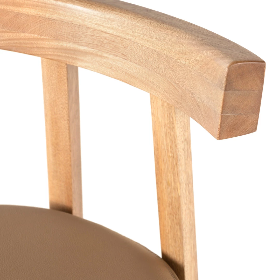 Opt for a beautifully monochromatic look inspired by Greek design. Solid Rosa Morada forms a T-shape frame for light tan top-grain leather seating perfectly sized for the counter.