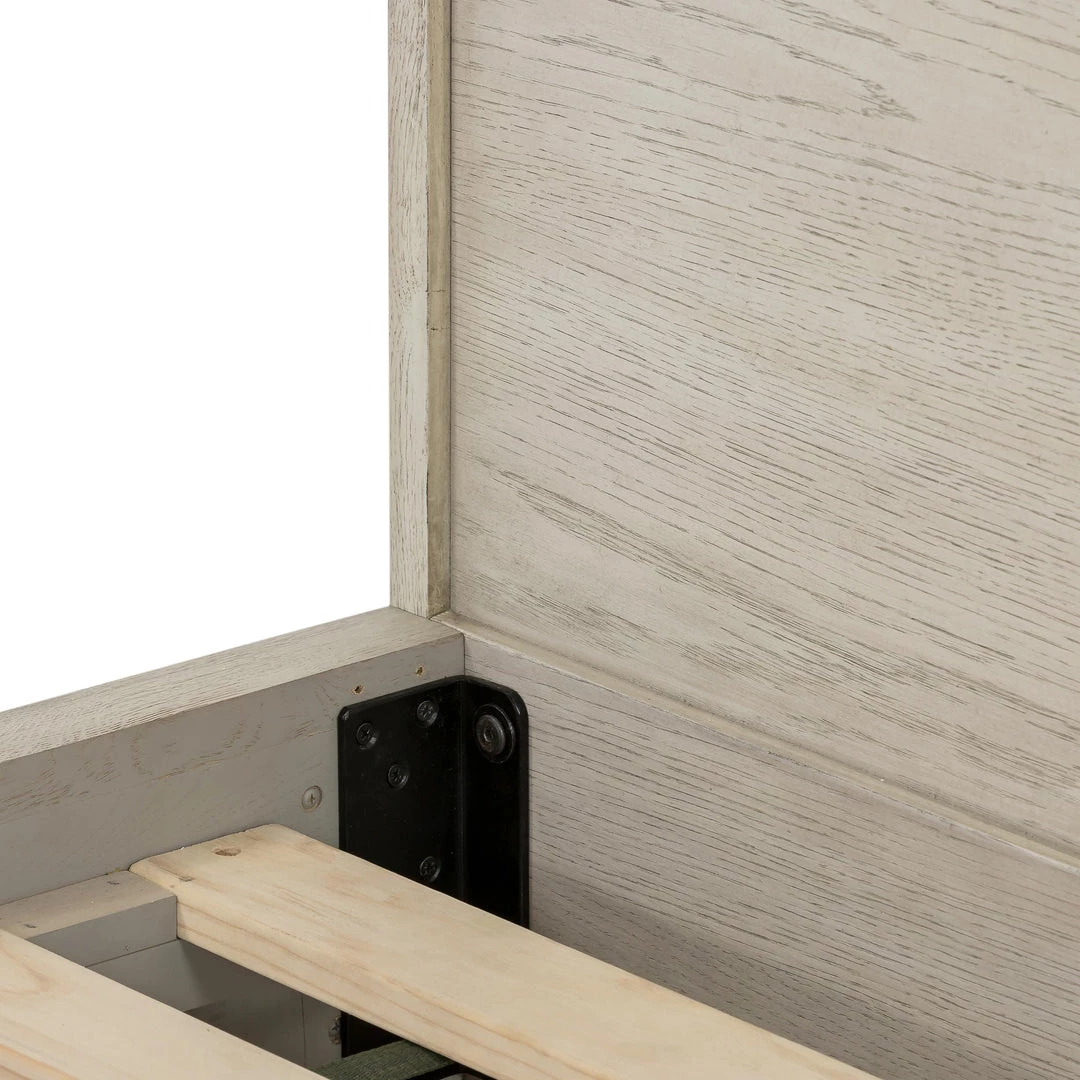 Stately style. Finished in a beautifully light vintage white, a low, clean-lined oak bed features inset panel detailing on head and foot boards plus side rails, for an elegant, angular look.