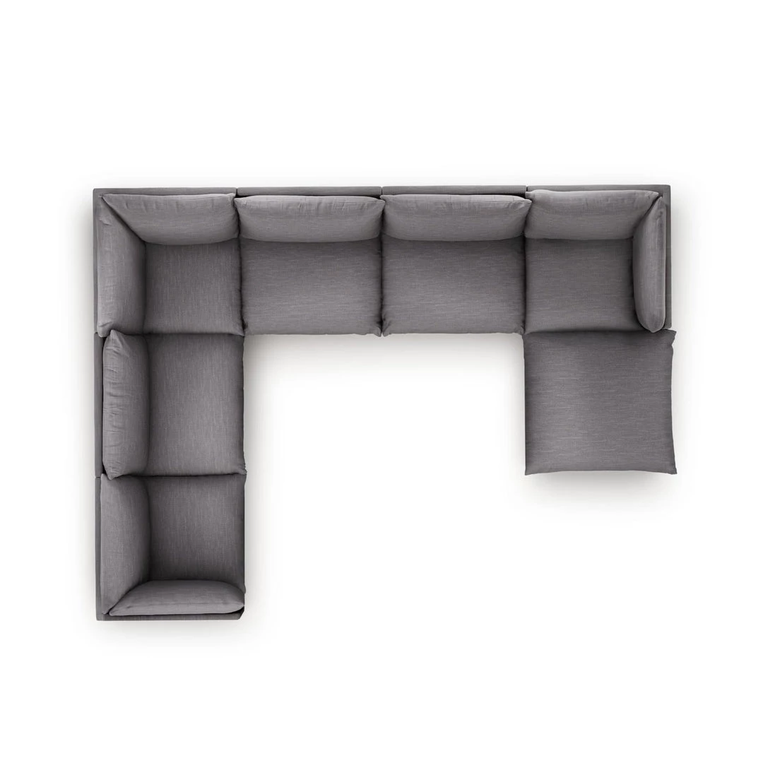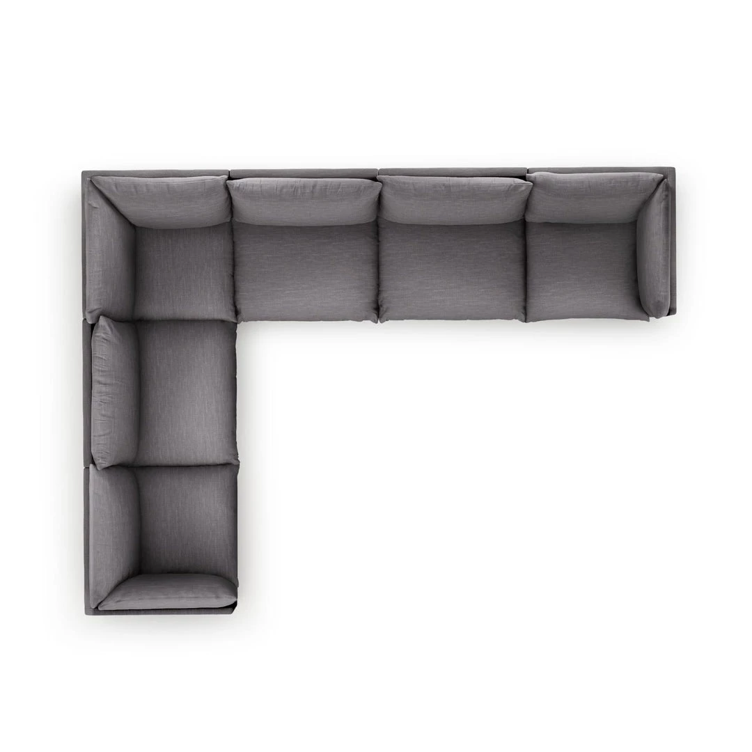 The ultimate six-piece sectional. Knife edge cushioning is upholstered in an easy-to-clean high performance fabric that supports modern living.