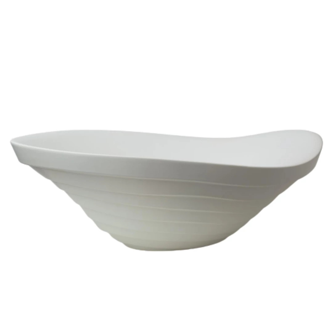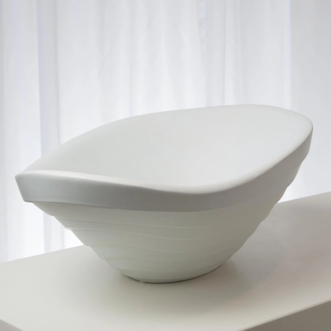 The exterior design of this Bowl is meant to mimic the terraces that occur in nature or in fields cultivated by man. Terracing decreases erosion and supports crops that require irrigation by enabling efficient use of shallow soil and allowing runoff to water terraces below. The interior of our bowl is smooth, the entire piece is glazed in a food-safe matte white glaze. Crafted in Portugal of slip molded ceramic clays.