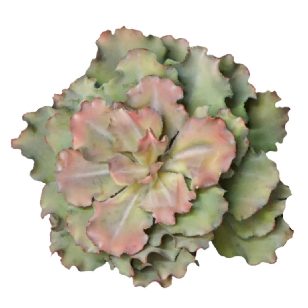 A popular oversized succulent with frilled edges and a touch of rose color in the center. No pot. Indoor only.