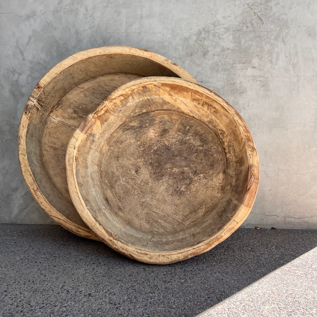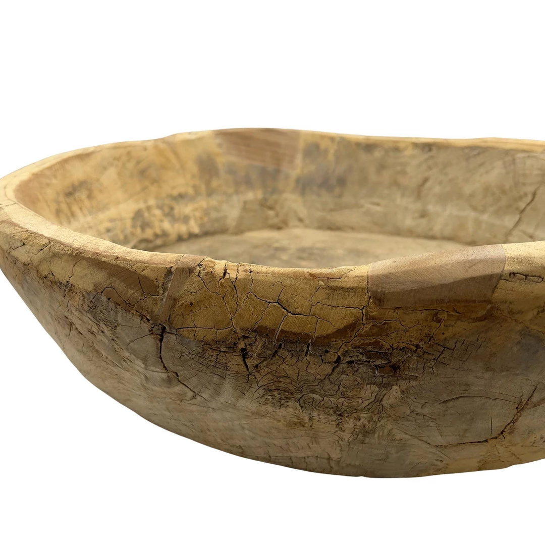 Our Extra Large Wood Bowls add the perfect vintage touch to your space. Each wood bowl is a found antique and so unique, varied in size, shape, and distressing. There are no two identical, and each one has been naturally aged with distinct marks and carvings, making it one-of-a-kind.
