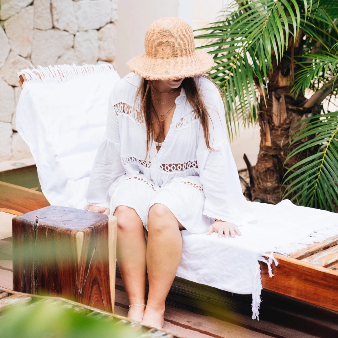 This beach towel is cozy enough for drying and cute enough for lounging. Made from cotton and lined with fringe detail on the edges.Â