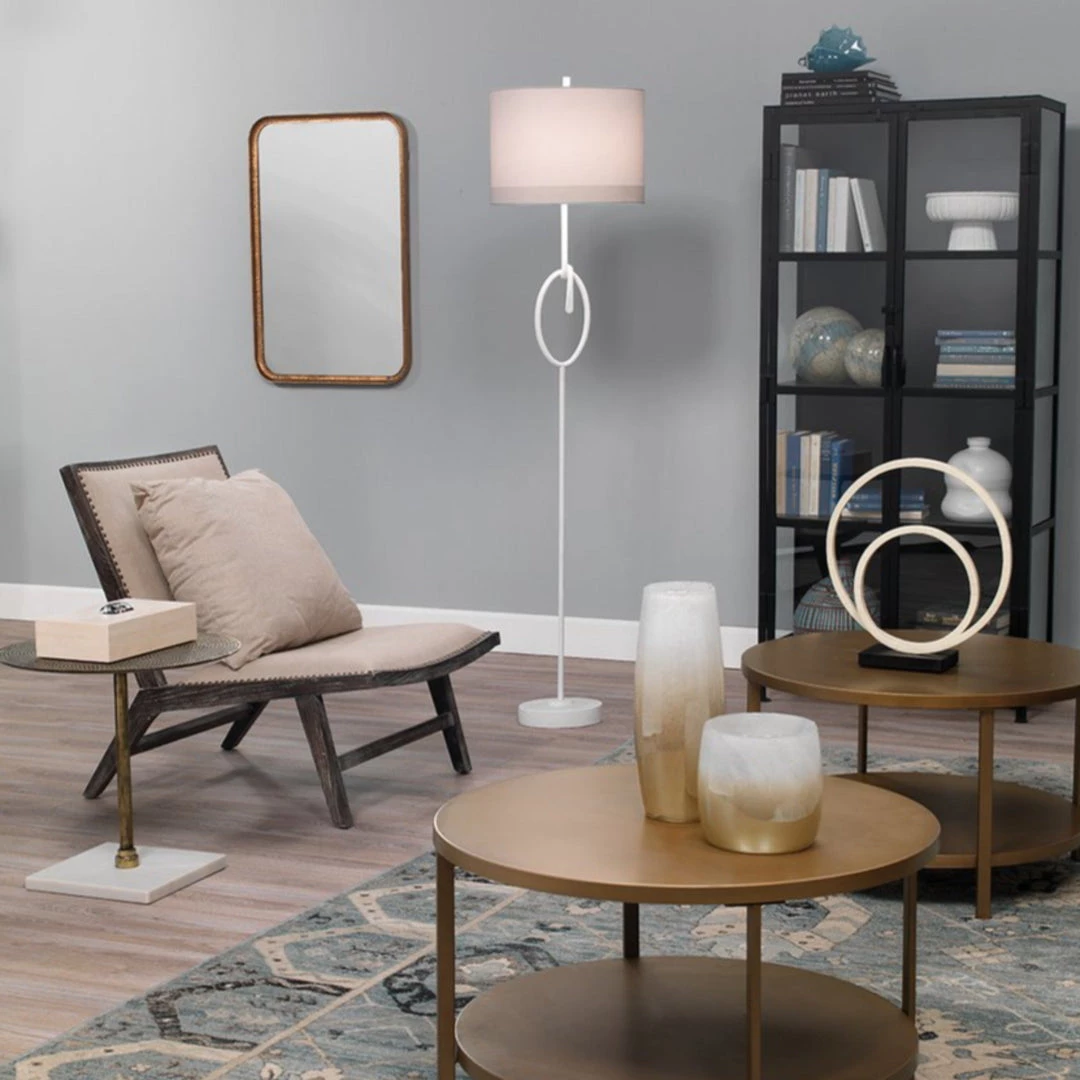 Steel and Gesso Material, White Gesso Plaster on Metal and Off White Linen Shade