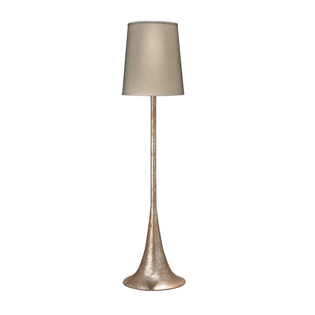 Hammered Metal Floor Lamp, Platinum Patina Metal Finish, Natural Linen Shade and 150 Watts