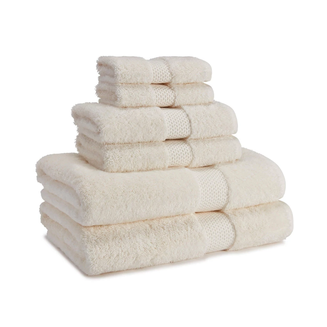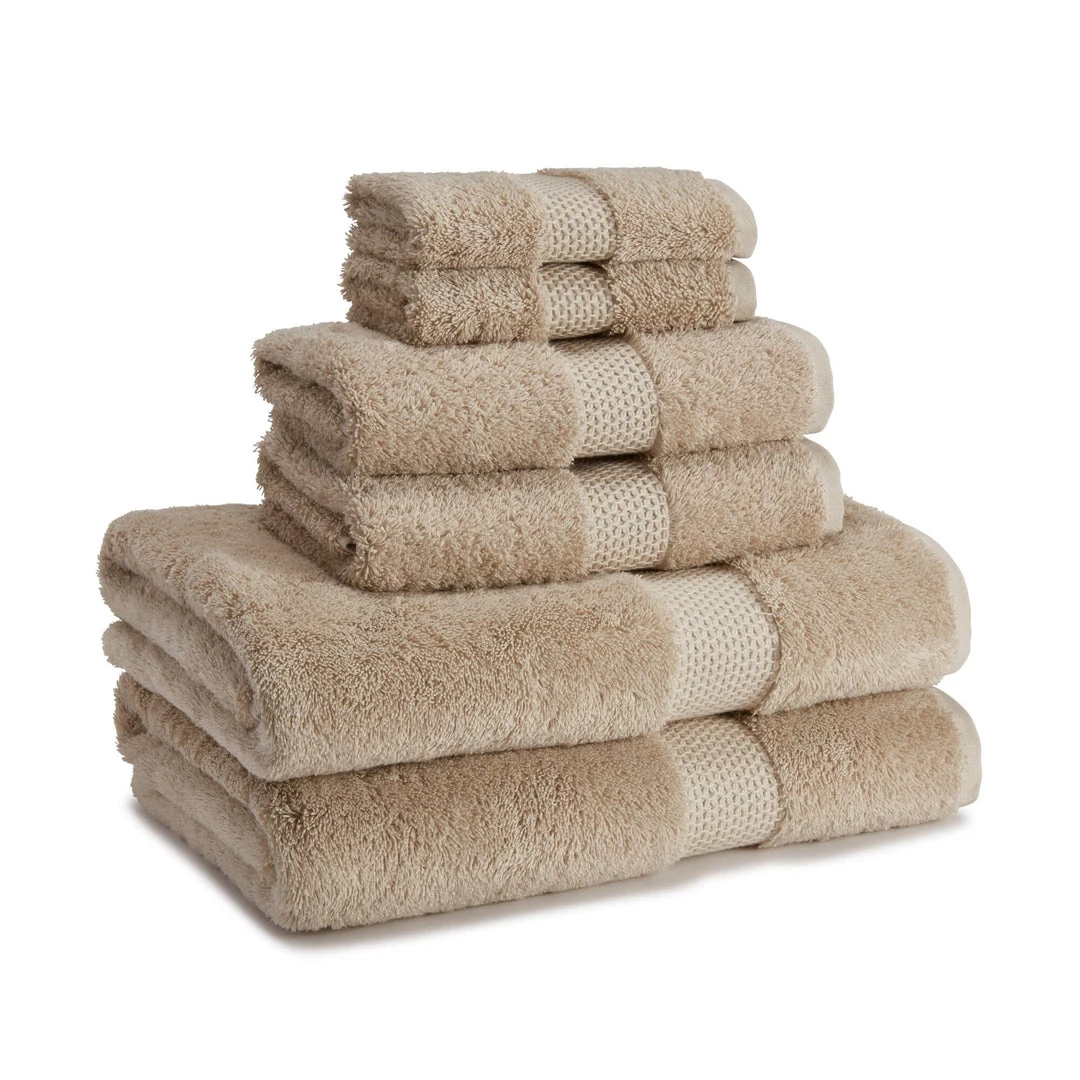 87% combed Aegean cotton 13% modal, 650 GSM, bath towel features a sewn in hanger loop, made in Turkey, available colors in Buttercream, Cielo, Dune, Fog Grey, Lemon and White