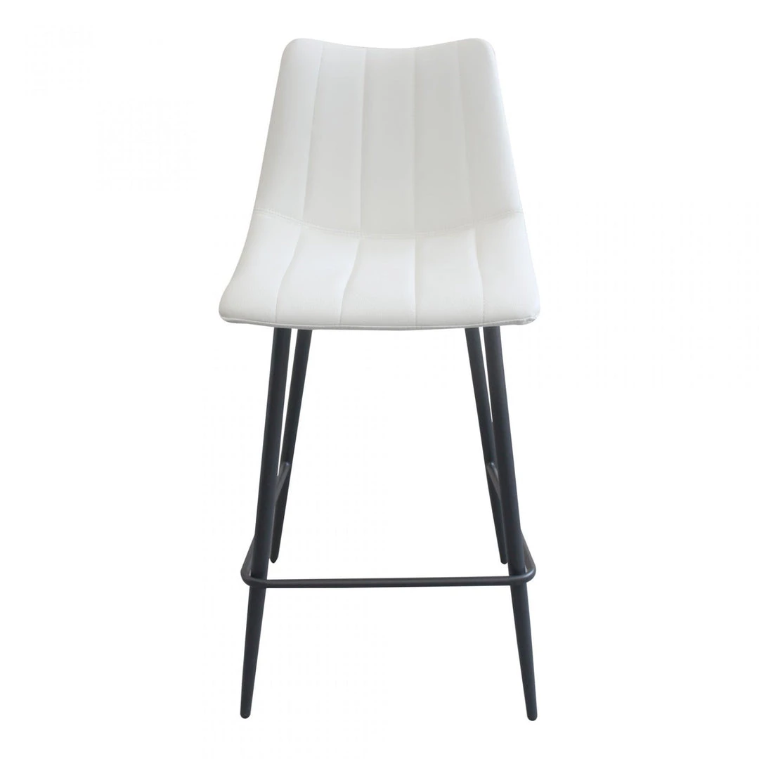 Contemporary modern stools get a new take with this sleek aesthetic. Features striking vertical line stitches that add subtle detail to its monochromatic design. A soft faux leather seat is shaped to fit for comfort so guests can relax at the island or bar counter.