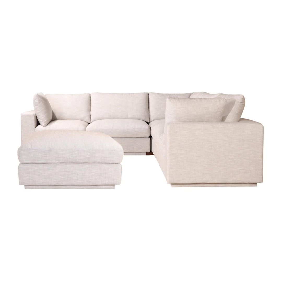The Justin modular sectional in Taupe is the ultimate seating area. It showcases two large chaises in its contemporary modern design. The linen polyester upholstery makes this sectional soft and cozy and its high-density foam cushioning is surely made to last. It’s perfect for a casual movie night or a fun hang-out spot for the family.