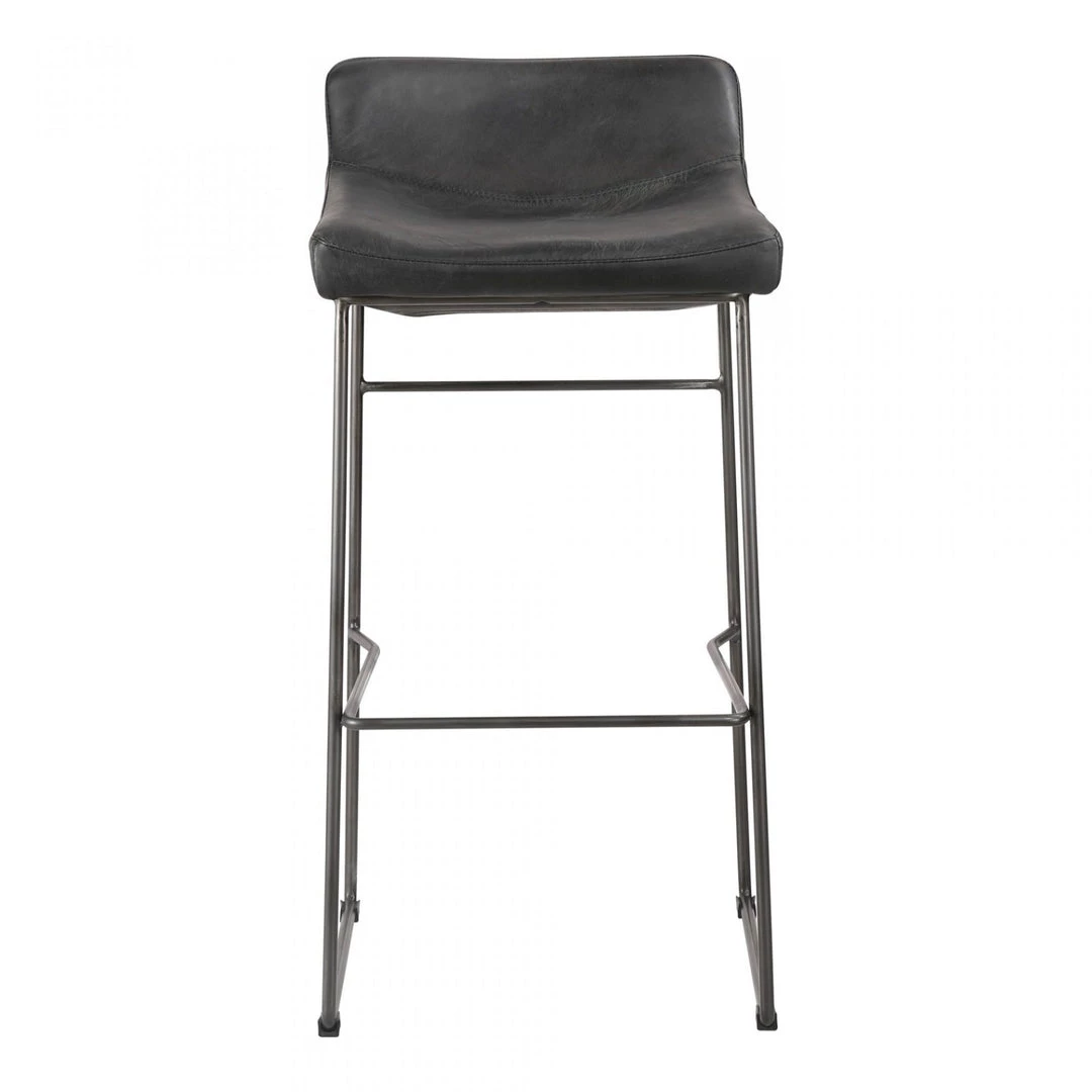 Upgrade your kitchen or dining room with this sleek, cocktail-ready design that showcases poise and comfort. Helps seat the kitchen party effortlessly, adding cool sophistication to your space with its wider seat, slim iron frame, and luxe leather upholstery. This contemporary minimalist design is ideal to float around the home for extra seating but works perfectly at counter-height.