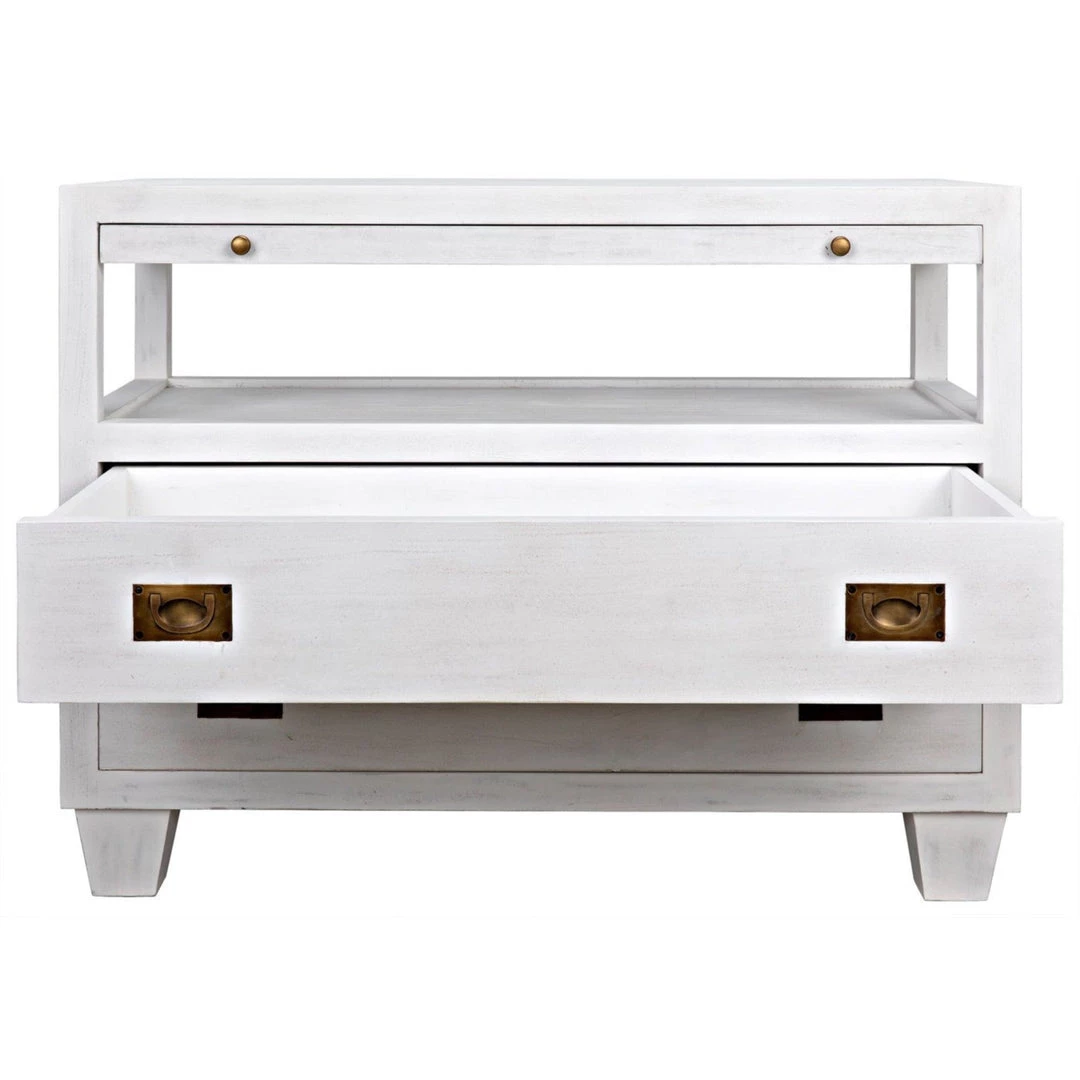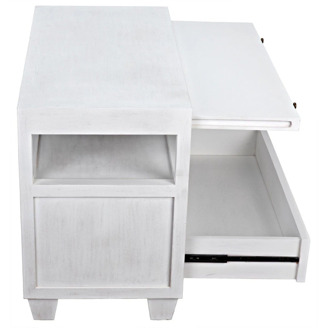 Expertly hand-carved of mahogany and finished in a clean crisp white, this remarkable side table’s features include two generous drawers and a handy sliding tray to increase the surface of its top when required.