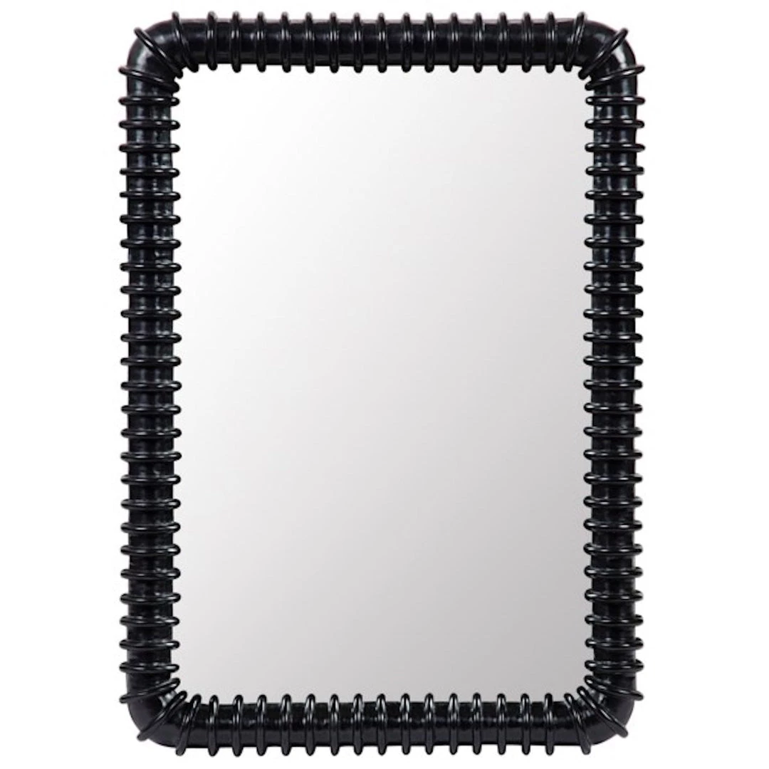 A classic hardwood is given an industrial edge with hand-carved ribbing and a hand-rubbed finish in this urban-inspired, rounded- rectangular wall mirror.