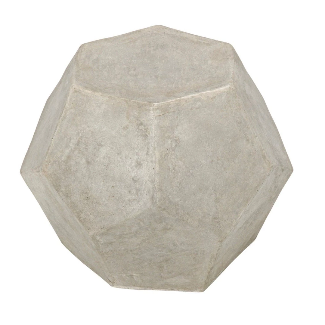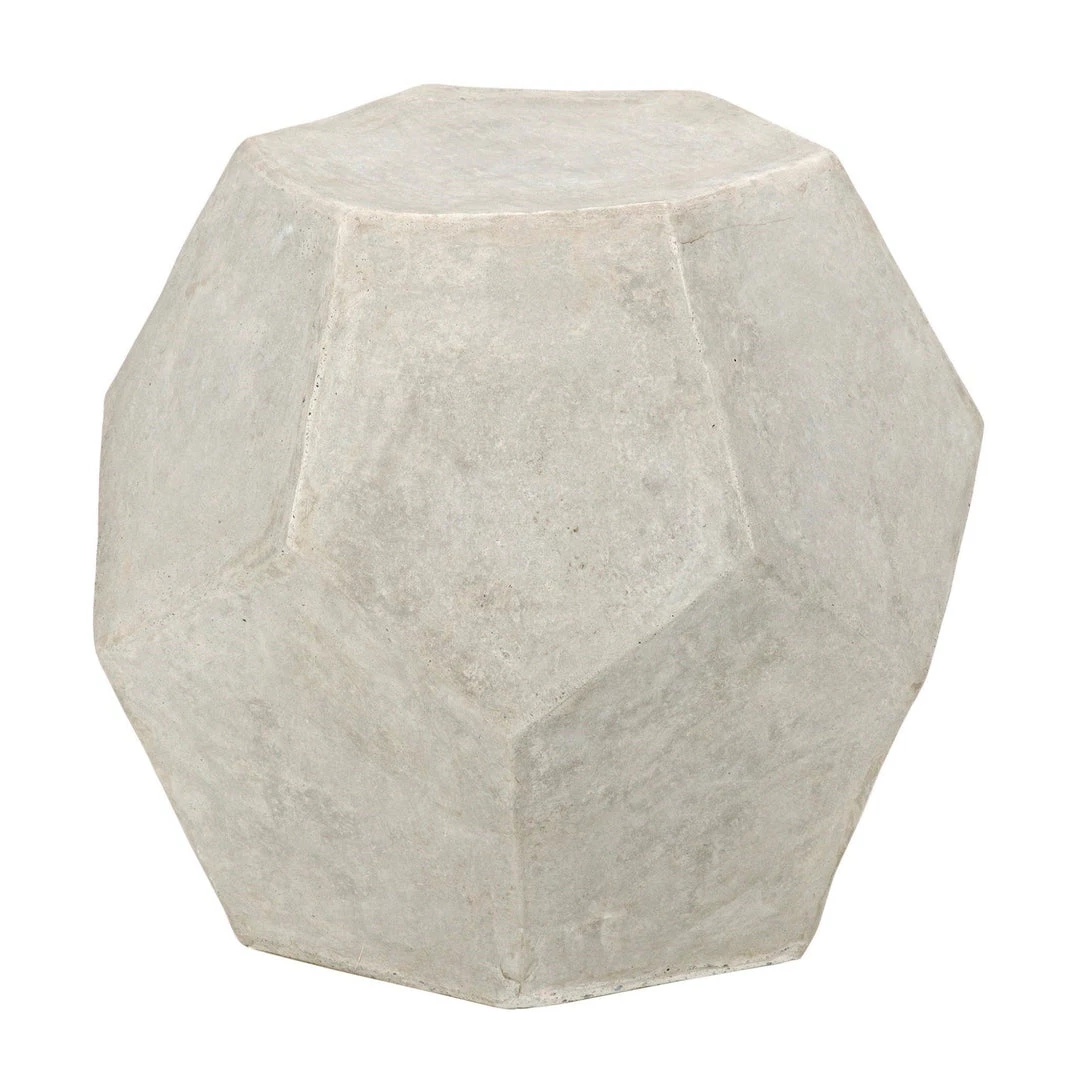 Sculpted of fiber cement, a unique material with a rich, natural texture, this bold side table has an intriguing geometric shape and a soft neutral finish that integrates easily into any modern decor.