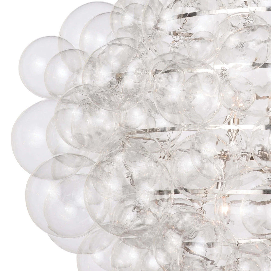 Features hundreds of glass balls in varying sizes to create a cloud-like orb, suspended by a polished nickel frame and chain. Make a statement in your living room or above a dining table with this airy fixture.